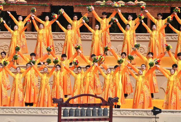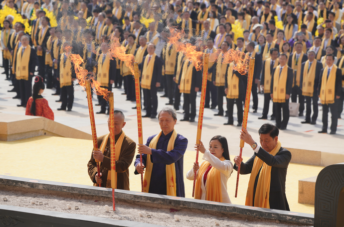 大典共有九項(xiàng)儀程,分別為:盛世禮炮、敬獻(xiàn)花籃、凈手上香、共拜始祖、恭讀拜文、高唱頌歌、樂(lè)舞敬拜、祈福中華、天地人和。