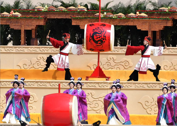 南門廣場(chǎng)上,龍騰虎躍,鼓聲震天。來(lái)自中原大地的特色民俗表演升騰鼎沸,為今年的拜祖大典奏響吉慶的序章。
