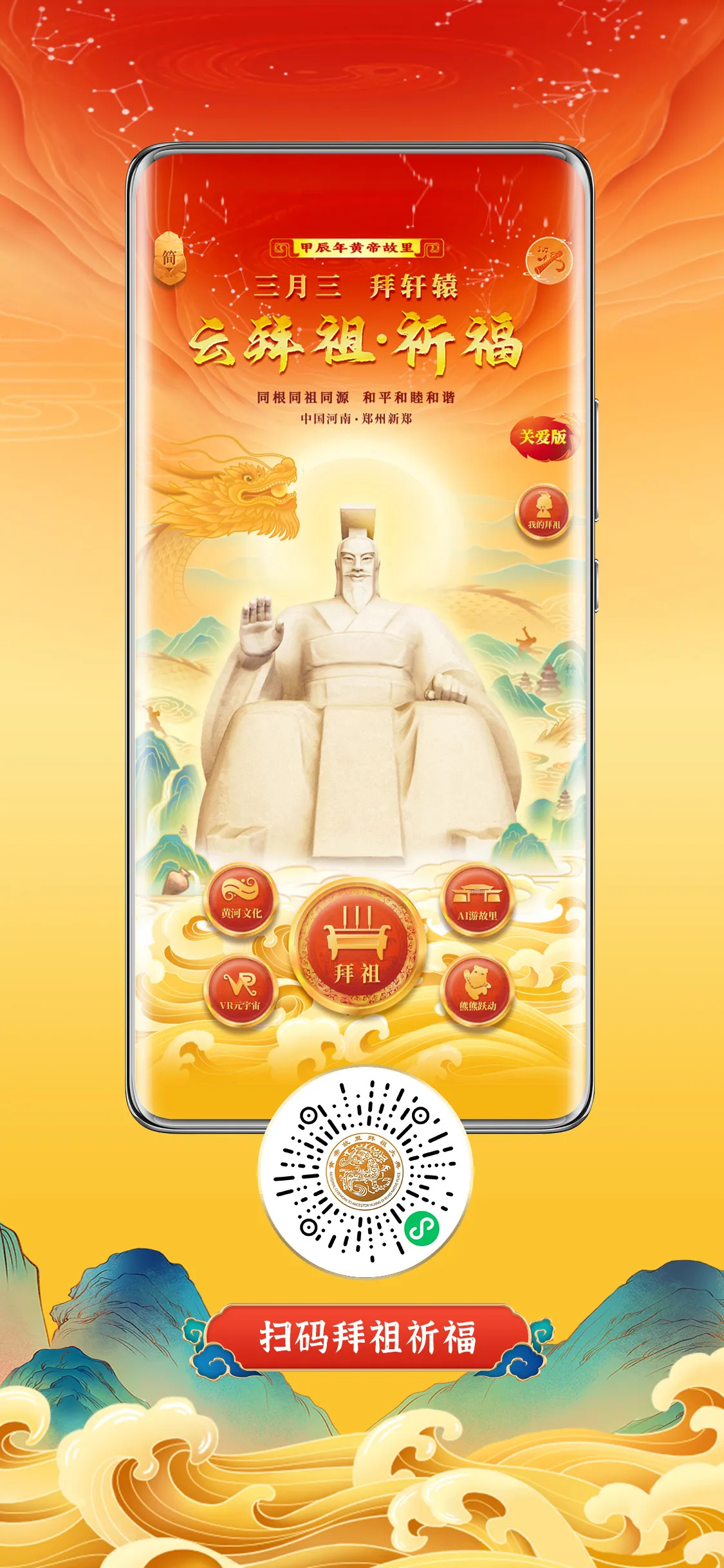 甲辰年黃帝故里拜祖大典延續(xù)“同根同祖同源,和平和睦和諧”主題,由河南省人民政府、政協(xié)河南省委員會(huì)、國(guó)務(wù)院臺(tái)灣事務(wù)辦公室、中華全國(guó)歸國(guó)華僑聯(lián)合會(huì)、中華全國(guó)臺(tái)灣同胞聯(lián)誼會(huì)、中華炎黃文化研究會(huì)聯(lián)合主辦,鄭州市人民政府、政協(xié)鄭州市委員會(huì)承辦,新鄭市人民政府協(xié)辦。