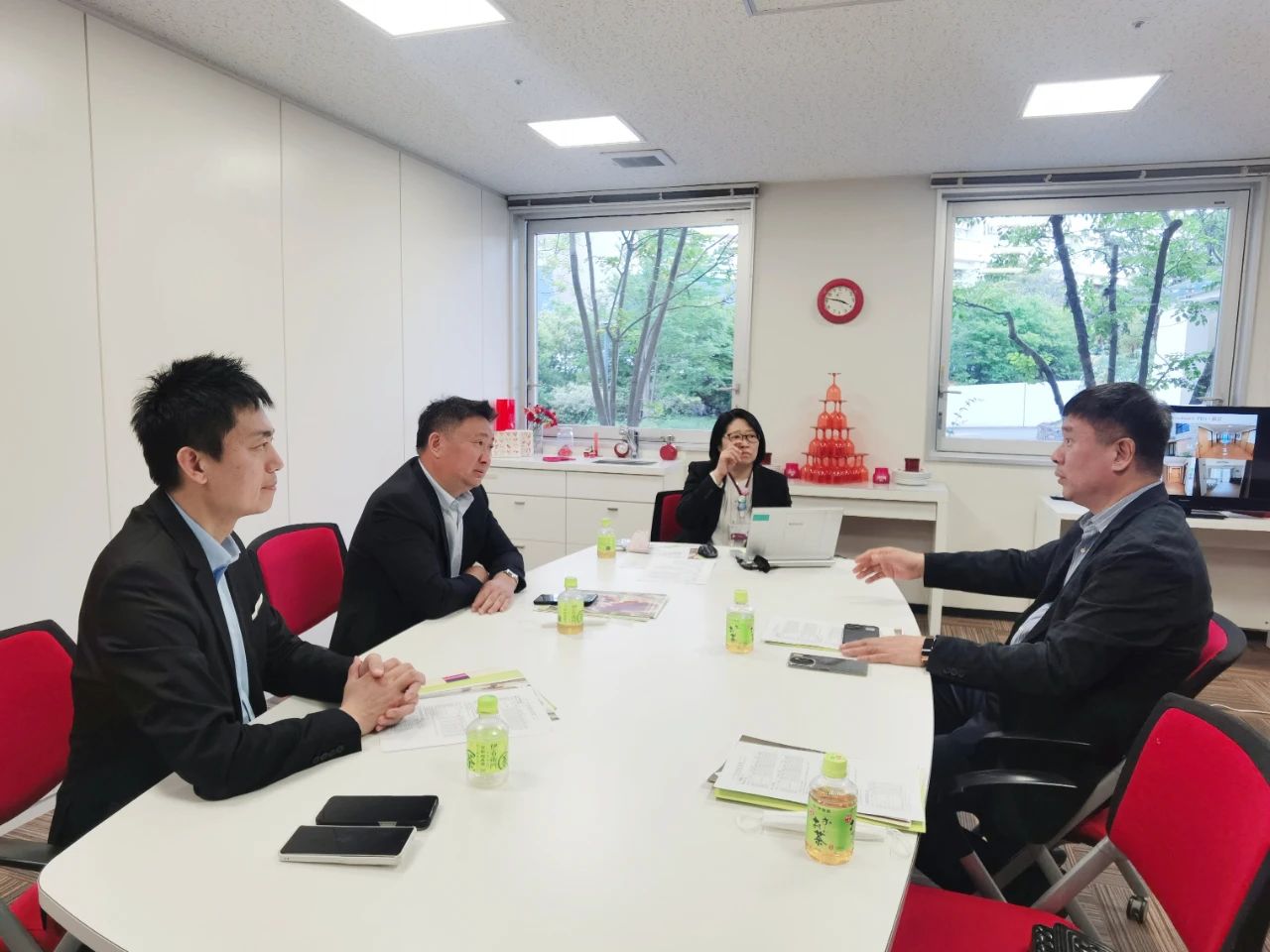 5月10日上午,羅建中、苗青、宋保山、柴莉一行到訪東京JC國際株式會社,與東京JC國際株式會社社長李軍座談交流,并贈送獨具河南特色的汴繡禮物。