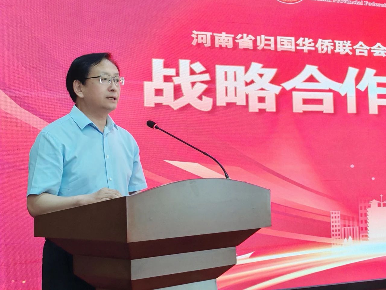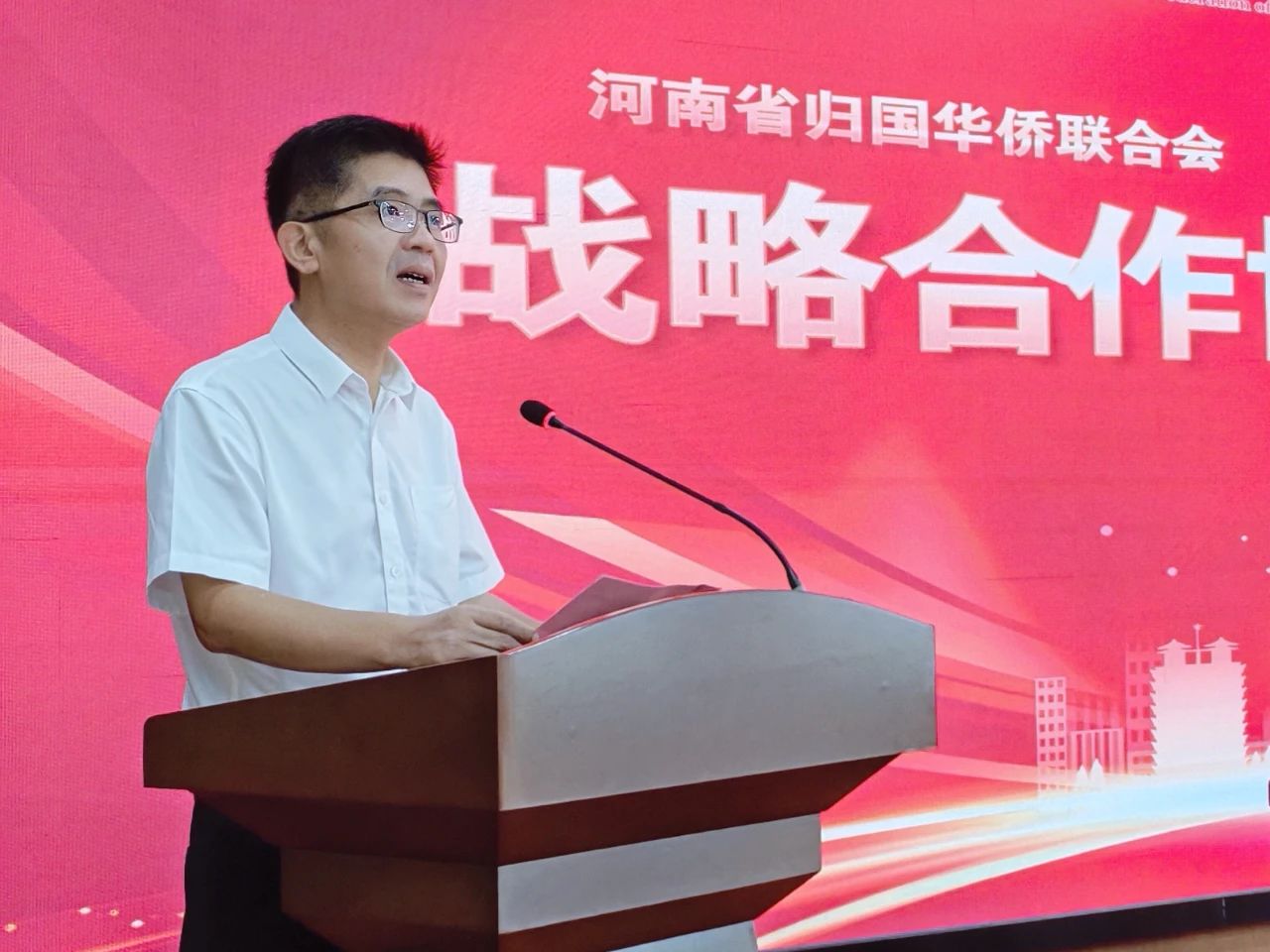 楊海強(qiáng)致辭表示,僑聯(lián)是黨創(chuàng)立和領(lǐng)導(dǎo)的人民團(tuán)體、群眾組織,是黨和政府聯(lián)系廣大歸僑僑眷和海外僑胞的橋梁紐帶。近年來(lái),省僑聯(lián)堅(jiān)持圍繞中心、服務(wù)大局、服務(wù)僑胞,創(chuàng)新實(shí)施“五化”聯(lián)動(dòng),全省僑聯(lián)事業(yè)高質(zhì)量發(fā)展取得了新成就,為推進(jìn)中國(guó)式現(xiàn)代化建設(shè)河南實(shí)踐做出了積極貢獻(xiàn)。當(dāng)前,河南省僑聯(lián)正在積極拓展平臺(tái)和渠道,服務(wù)僑商發(fā)展,加強(qiáng)海外聯(lián)誼。河南郵政公司負(fù)責(zé)全省郵政通訊建設(shè)以及業(yè)務(wù)經(jīng)營(yíng),具有廣泛的覆蓋面,通達(dá)全球,優(yōu)勢(shì)明顯,一直以來(lái)與僑聯(lián)有著深厚的合作淵源。河南省僑聯(lián)與郵政公司建立戰(zhàn)略合作關(guān)系,既是雙方以習(xí)近平新時(shí)代中國(guó)特色社主義思想為指引,深入學(xué)習(xí)貫徹黨的二十大和二十屆三中全會(huì)精神的重要舉措,也是雙方堅(jiān)持為大局服務(wù)和為僑服務(wù)相統(tǒng)一,立足長(zhǎng)遠(yuǎn)、密切協(xié)作、形成合力的實(shí)際行動(dòng)。希望兩家單位以戰(zhàn)略協(xié)議的簽署為起點(diǎn),互相支持,共同服務(wù)經(jīng)濟(jì)發(fā)展,圍繞跨境電商、快遞物流、貨源地直采、海外倉(cāng)資源等業(yè)務(wù),促進(jìn)僑商僑企、海外僑團(tuán)和郵政公司的信息交流和資源共享,形成產(chǎn)業(yè)鏈對(duì)接機(jī)制,指導(dǎo)僑企、僑團(tuán)走出去、請(qǐng)進(jìn)來(lái),不斷為我省經(jīng)濟(jì)發(fā)展注入新動(dòng)能。
