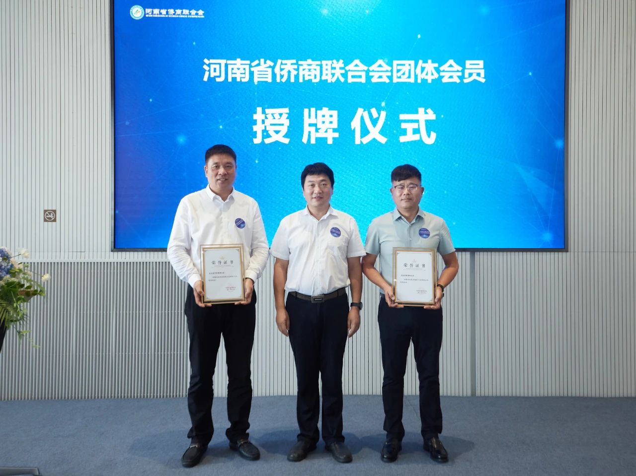 結合本階段會員發(fā)展情況,現(xiàn)場舉行了團體會員授牌儀式。2024年至今,開封市僑商會、駐馬店市僑商會積極加入省僑商會大家庭,現(xiàn)場,邱建鋒為新入會的團體會員授牌,駐馬店市僑商會會長鄭定輝、開封市僑商會秘書長謝志遠分別代表兩個商會上臺接受授牌。這一重要時刻,標志著省僑商會正在織就的河南僑界一張網(wǎng)越發(fā)完整,與地市僑商會的聯(lián)系更加緊密。