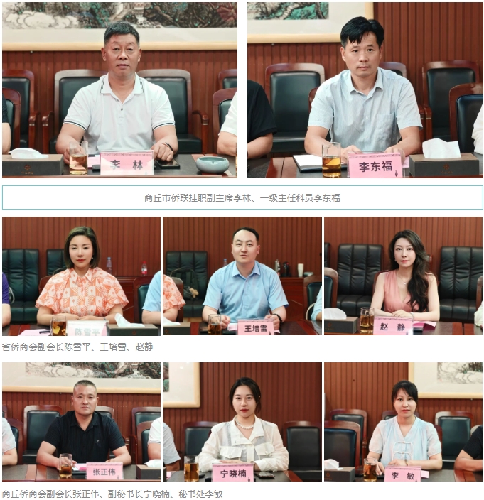 8月22日,商丘市僑聯(lián)黨組書記、主席趙勁松,商丘市僑商會(huì)會(huì)長楊統(tǒng)一一行到訪省僑商會(huì)座談交流,雙方就河南省、商丘市僑商會(huì)如何聯(lián)動(dòng)發(fā)展進(jìn)行探討。商丘市僑聯(lián)掛職副主席、睢陽區(qū)僑聯(lián)主席李林,商丘市僑聯(lián)一級(jí)主任科員李東福及商丘市僑商會(huì)副會(huì)長張正偉、副秘書長寧曉楠、秘書處李敏等隨行。我會(huì)執(zhí)行會(huì)長李明獻(xiàn),副會(huì)長陳雪平、王培雷、趙靜,執(zhí)行秘書長柴莉及秘書處熱情接待。會(huì)議由柴莉主持。