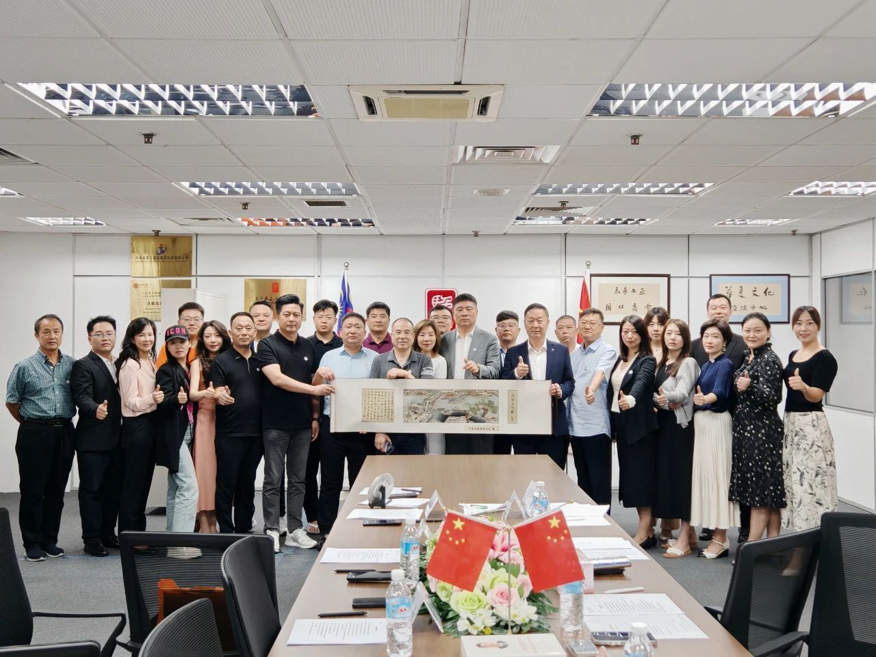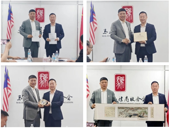 隨后,鄭定輝和曹峰分別代表河南省僑商聯(lián)合會(huì)和馬來(lái)西亞豫商聯(lián)合會(huì)簽訂戰(zhàn)略合作協(xié)議,鄭定輝向馬來(lái)西亞豫商聯(lián)合會(huì)授予我會(huì)駐馬來(lái)西亞聯(lián)絡(luò)處牌,雙方互贈(zèng)禮物并合影留念。