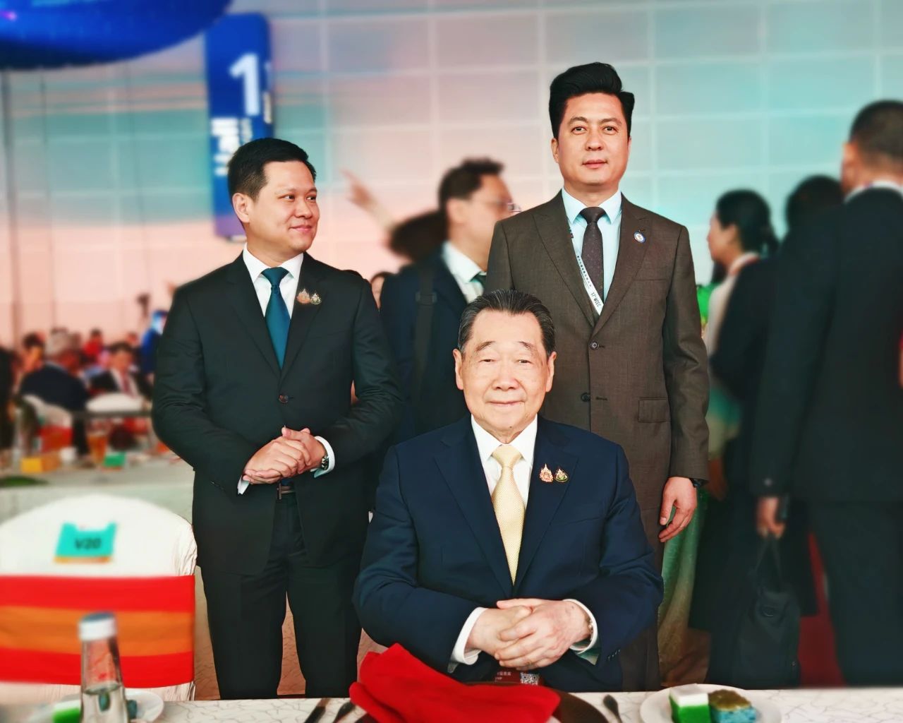 △與正大集團(tuán)資深董事長(zhǎng)謝國民合影(中:謝國民,右:陳向輝)