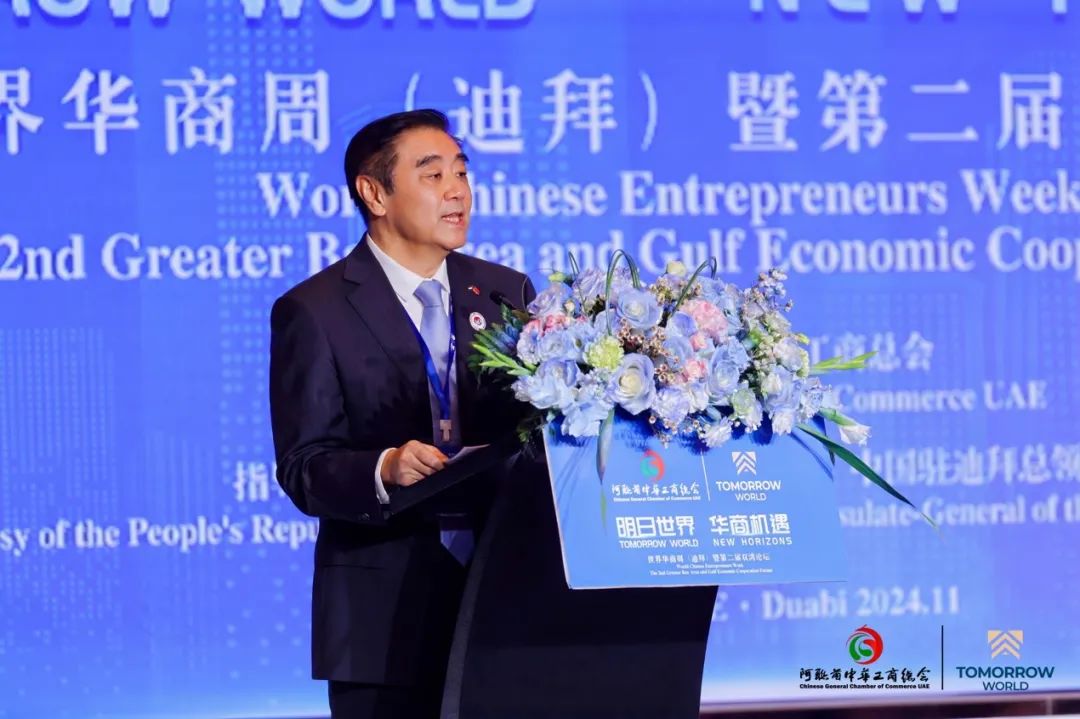 在中國(guó)駐阿聯(lián)酋使領(lǐng)館的指導(dǎo)與支持下,由阿聯(lián)酋中華工商總會(huì)主辦,明日世界冠名的“世界華商周(迪拜)暨第二屆雙灣論壇”活動(dòng)于11月13~14日在迪拜盛大舉行,大會(huì)吸引了來(lái)自全球29個(gè)國(guó)家和地區(qū)的華商領(lǐng)袖、企業(yè)家及政府官員超600余人的積極參與。此次活動(dòng)不僅是全球華商交流與合作的重要平臺(tái),也標(biāo)志著中阿經(jīng)濟(jì)、文化合作的進(jìn)一步深化。我會(huì)監(jiān)事長(zhǎng)鄭定輝、執(zhí)行秘書(shū)長(zhǎng)柴莉帶隊(duì),副會(huì)長(zhǎng)陳雪平,常務(wù)理事楊新坡、陳運(yùn)強(qiáng),會(huì)員魏文軍、盧嘉等應(yīng)邀參加本次活動(dòng)。