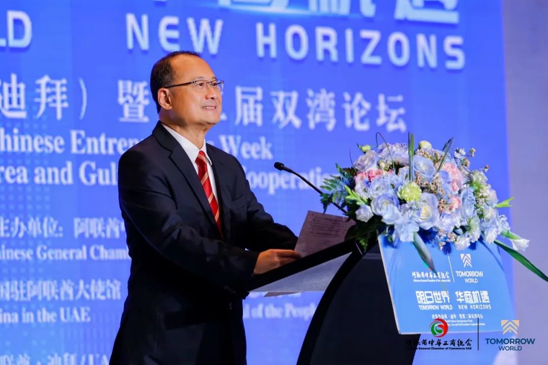 蔡冠深博士則分別對(duì)本次華商周以及雙灣論壇致辭并做主旨推介,隨著中阿關(guān)系不斷升溫,粵港澳大灣區(qū)與阿聯(lián)酋及海灣地區(qū)也在不斷加深友誼,當(dāng)下是共話未來(lái)的最佳契機(jī)。