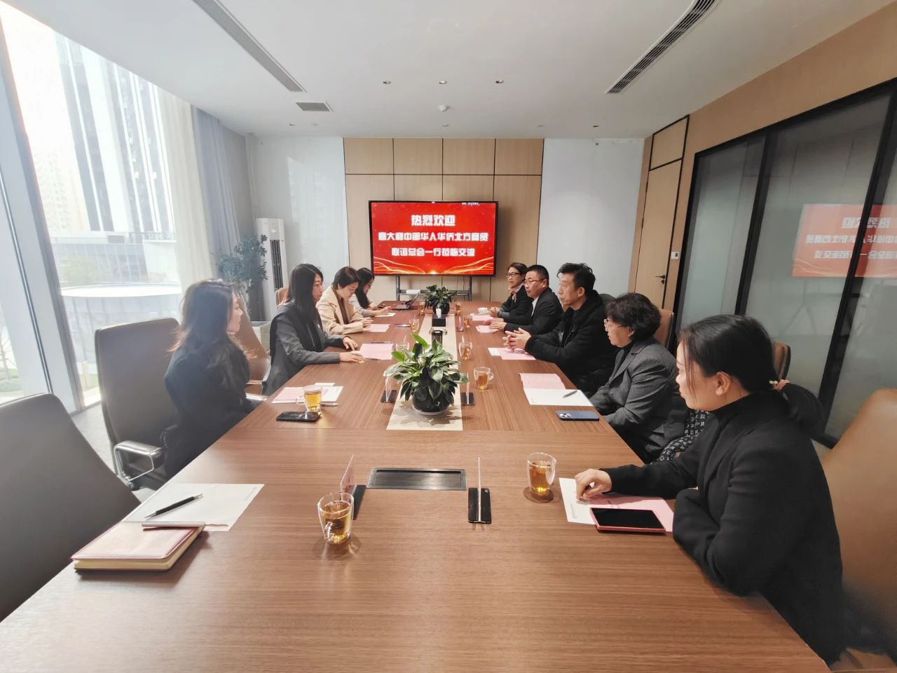 為加強(qiáng)商會(huì)之間的聯(lián)系與合作,搭建更好的溝通交流平臺(tái),12月4日下午,意大利中部華人華僑北方商貿(mào)聯(lián)誼總會(huì)會(huì)長金祝善、執(zhí)行會(huì)長陳閩生、秘書長李紅、監(jiān)事長張疆秋、溫州保蒙國際貿(mào)易有限公司總經(jīng)理謝偉一行到訪省僑商會(huì),我會(huì)執(zhí)行秘書長柴莉,副會(huì)長羅利、趙靜,宣傳部部長張利華熱情接待,雙方就兩地產(chǎn)業(yè)經(jīng)濟(jì)發(fā)展情況進(jìn)行座談交流和分享。