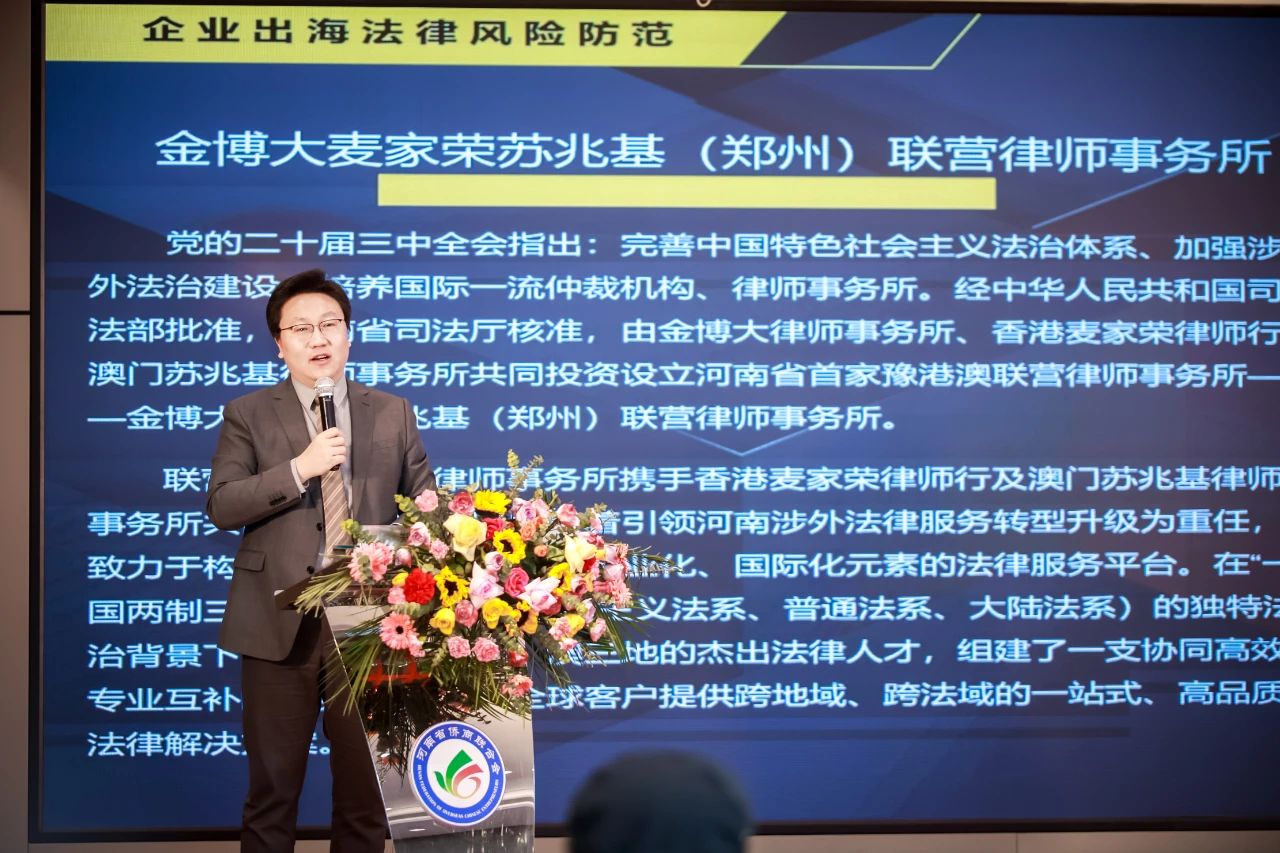 金博大麥家榮蘇兆基(鄭州)聯(lián)營律師事務(wù)所副主任侯江斐,為大家?guī)硪粓鲫P(guān)于“企業(yè)出海法律主題”的深度分享,他深度解析了近年來中國企業(yè)出海的現(xiàn)狀及出海方式變化等,并結(jié)合案例分析了企業(yè)在此過程中容易遇到的問題,提醒了大家出海注意事項等,為大家在復(fù)雜多變的全球環(huán)境中,合法合規(guī)地開拓海外市場,把握發(fā)展機遇,提供了寶貴的風(fēng)險提示和指導(dǎo)。