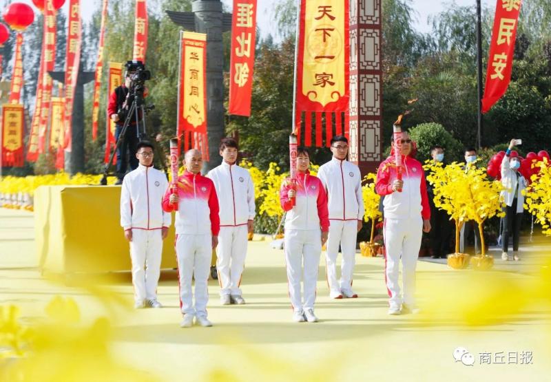 火炬?zhèn)鬟f,圣火點(diǎn)燃。9時(shí)19分,第八屆中國·商丘國際華商節(jié)拜謁儀式正式開始,全體肅立,鳴盛世禮炮9響,向先祖致敬,向來賓致敬。