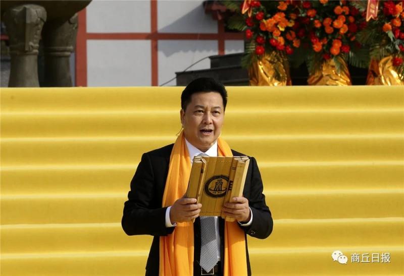 接著,朱奕龍緩步登臺(tái),恭讀拜謁文:……天命玄鳥,降而生商。商祖王亥,萬古流芳。……眾志成城,中國力量。全民抗疫,山河無恙。……商都拜祖,商德傳揚(yáng)。馬上就辦,實(shí)干興商。……
