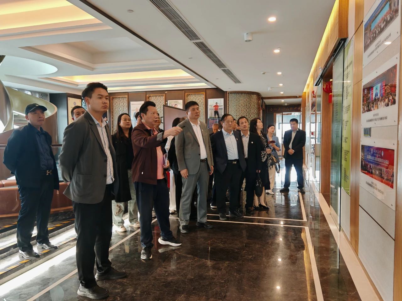 在海南省僑商聯(lián)合會各位領(lǐng)導(dǎo)的帶領(lǐng)下,一行人參觀了海南省僑商會的辦公地、展示墻,對商會有了一個整體的了解。