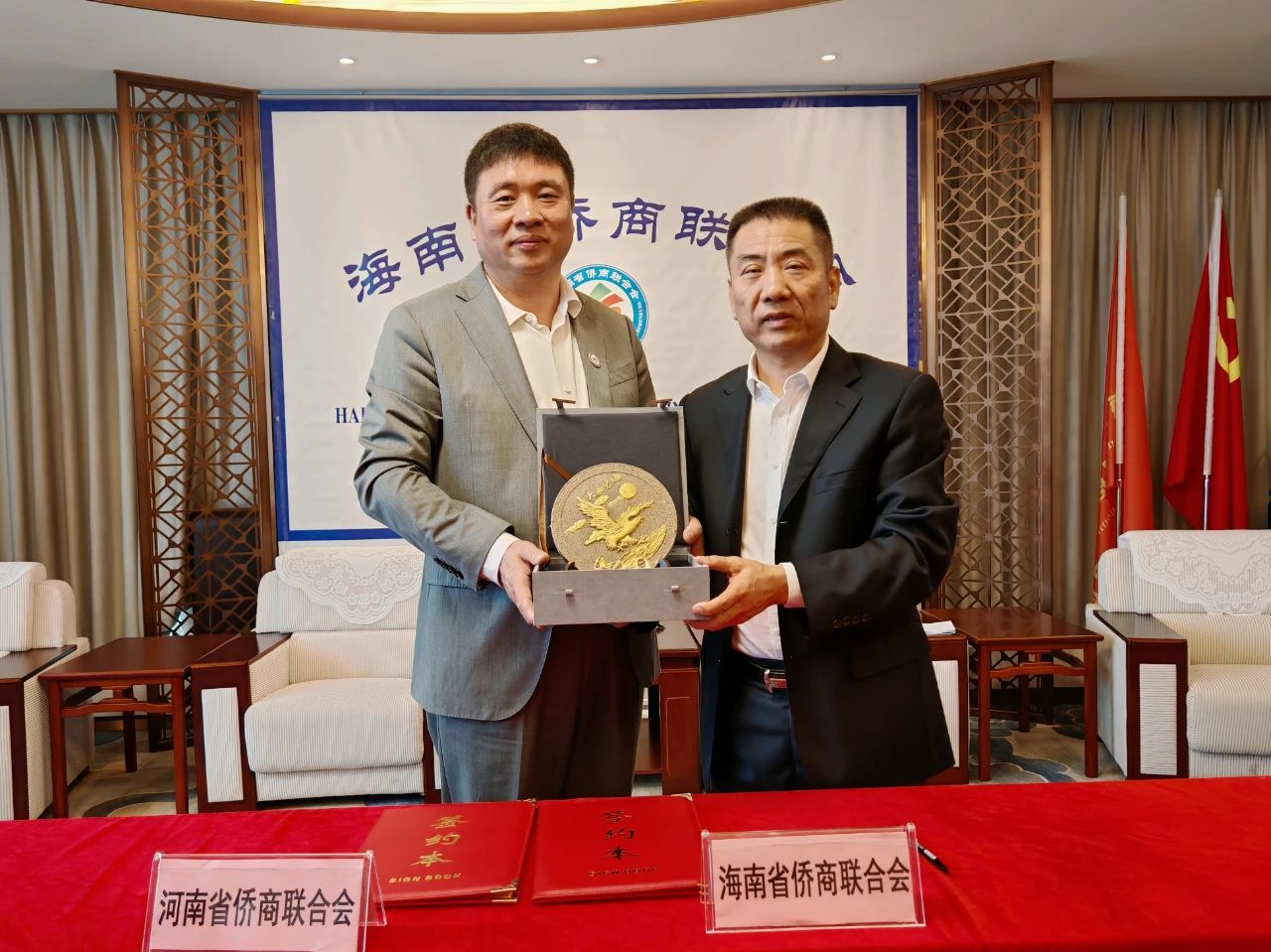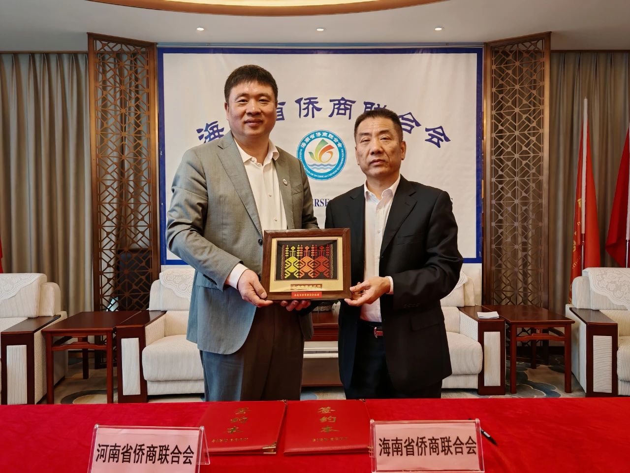 最后,河南省僑商聯(lián)合會與海南省僑商聯(lián)合會簽署《關(guān)于共同支持中國僑商投資大會招商及協(xié)助項(xiàng)目落地合作協(xié)議》戰(zhàn)略合作協(xié)議,并互贈禮物以示友好。