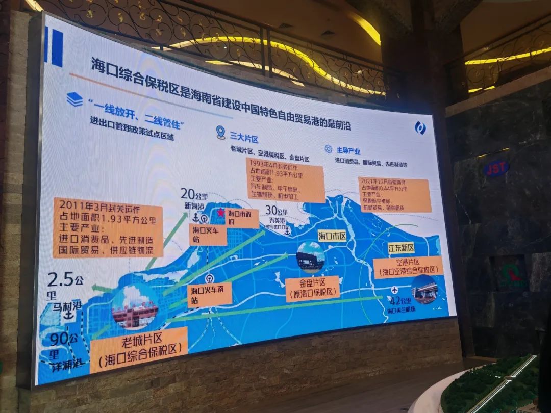 在海口綜合保稅區(qū),一行參觀了國際商品展示交易中心,深入了解海南自貿(mào)港和綜合保稅區(qū)的核心政策和龍頭企業(yè)入駐情況、落地案例、產(chǎn)業(yè)配套和服務(wù)等,并與??诰C合保稅區(qū)管委會副主任宋豪強及有關(guān)領(lǐng)導(dǎo)進行座談交流。