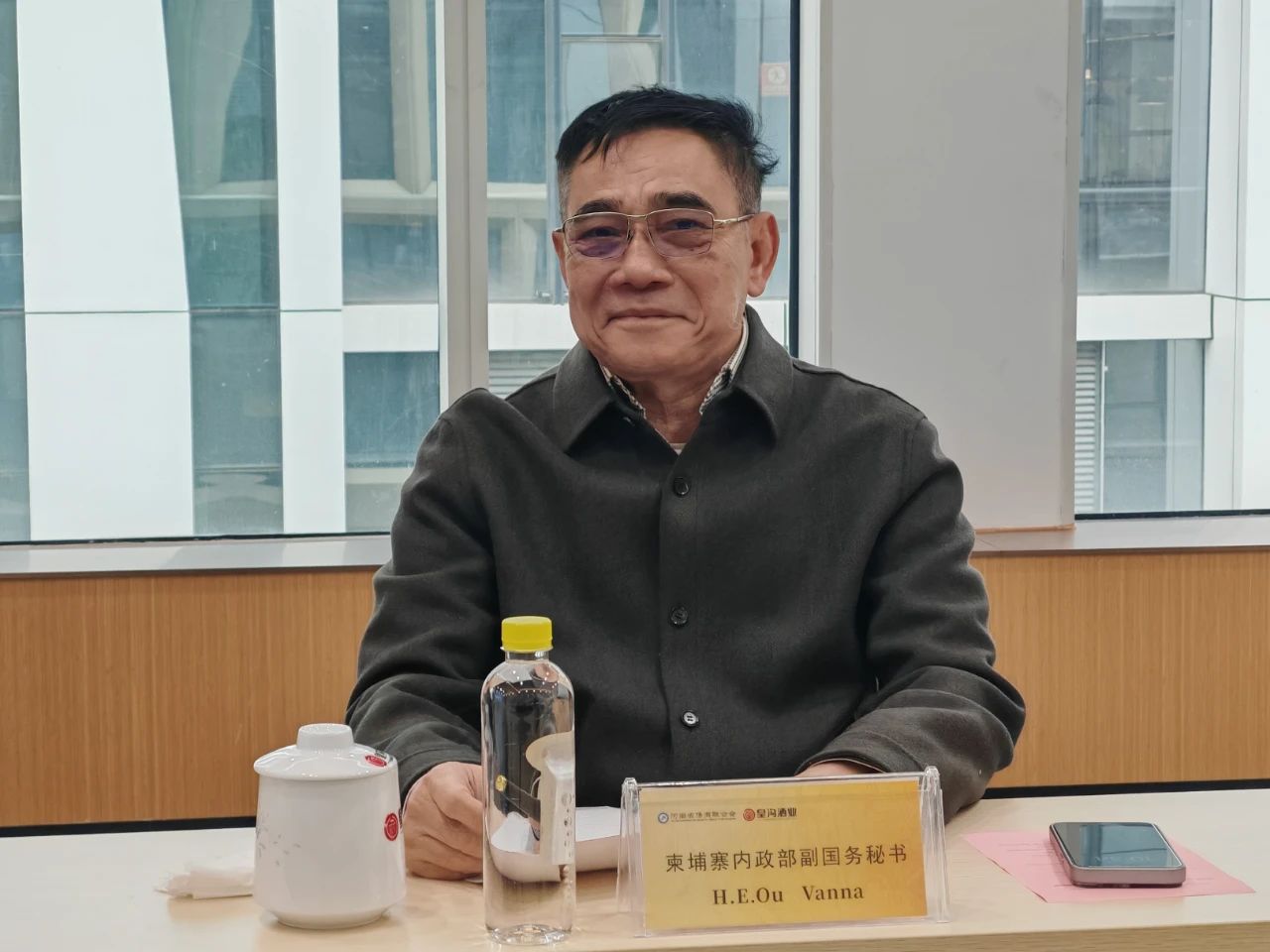 會后,河南省僑商聯(lián)合會會長、駐會執(zhí)行會長與柬埔寨內(nèi)政部國務(wù)秘書、副國務(wù)秘書互贈禮物。