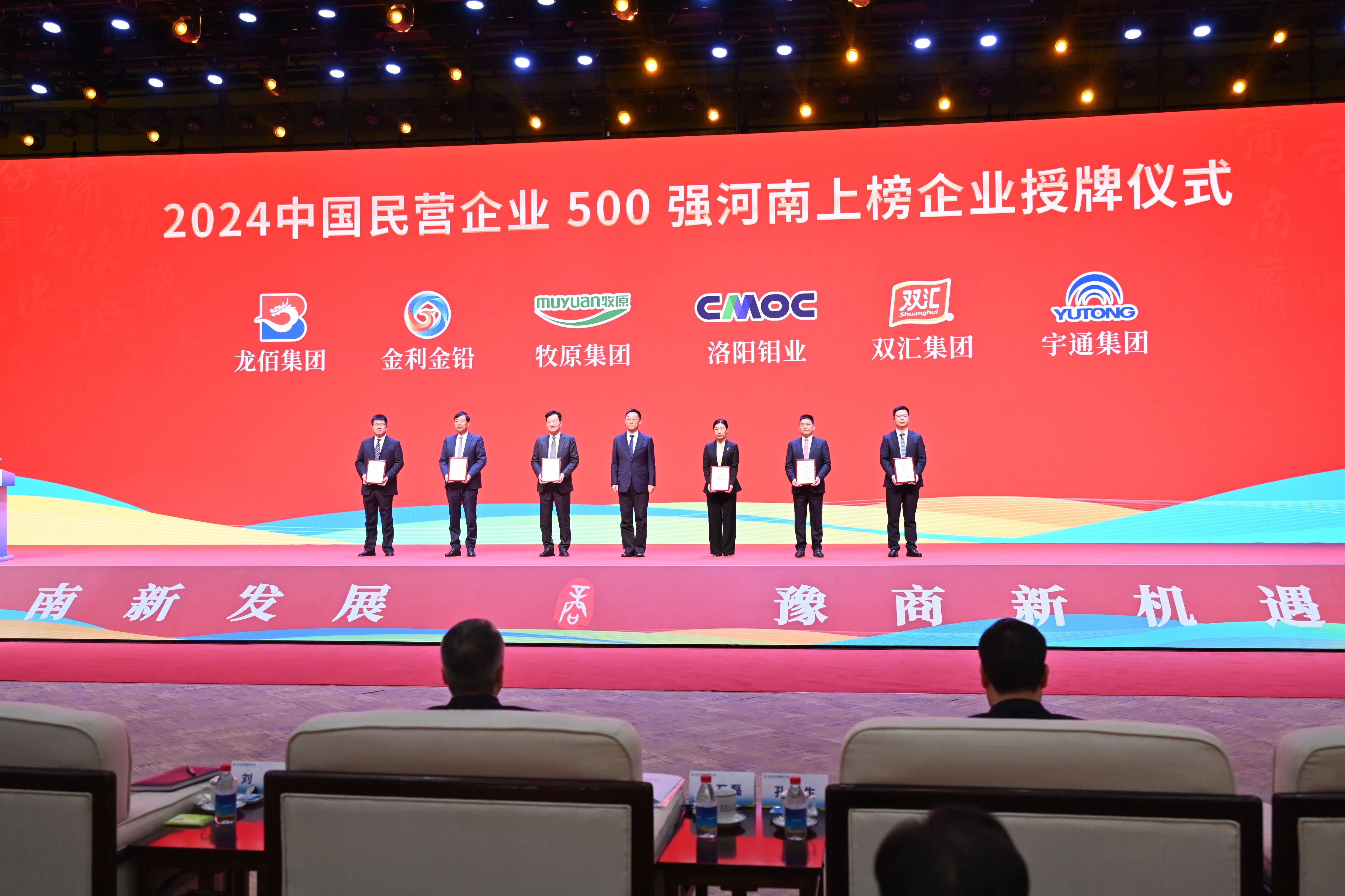 會(huì)上,沈瑩、劉寧為獲得“2024中國(guó)民營(yíng)企業(yè)500強(qiáng)”的河南企業(yè)授牌。中國(guó)鋁業(yè)、牧原實(shí)業(yè)、明陽智慧能源、慧博云通科技、凱旺電子、三全食品等豫商代表發(fā)言。