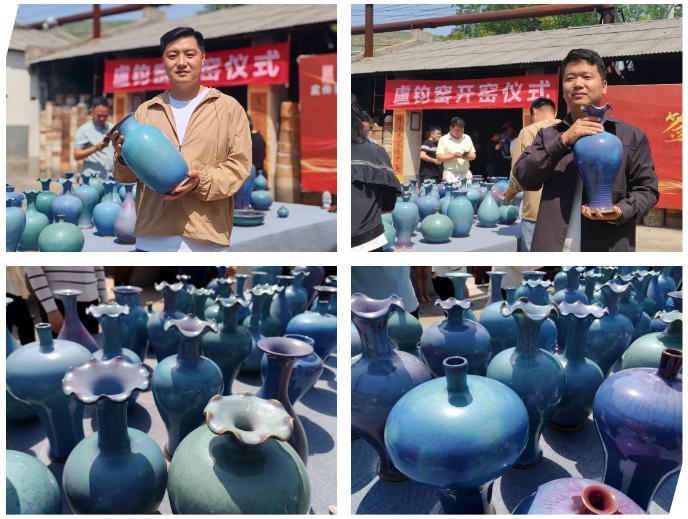 當(dāng)天,大家統(tǒng)一乘坐大巴前往神垕古鎮(zhèn),一路滿(mǎn)懷期待,駛向這座充滿(mǎn)魅力的鈞瓷圣地。抵達(dá)神垕古鎮(zhèn)后,一場(chǎng)充滿(mǎn)敬畏之心的開(kāi)窯儀式拉開(kāi)了本次活動(dòng)序幕。在完成了對(duì)窯神的祭拜后,窯門(mén)在眾人的期待中開(kāi)啟,一件件色彩斑斕、造型各異的鈞瓷作品終于現(xiàn)世,窯變產(chǎn)生的獨(dú)特紋理與絢麗色彩,讓在場(chǎng)眾人無(wú)不驚嘆鈞瓷藝術(shù)的神奇魅力。開(kāi)窯儀式不僅是一場(chǎng)視覺(jué)盛宴,更讓大家深刻感受到鈞瓷制作過(guò)程中蘊(yùn)含的匠心與神秘。