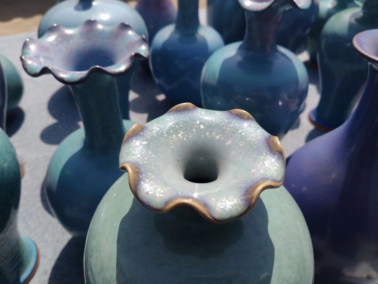 午后,在盧鈞窯總經(jīng)理王改枝的陪同下,大家走進(jìn)盧鈞窯生產(chǎn)基地參觀,近距離了解鈞瓷的制作、成型過(guò)程,欣賞鈞瓷作品的精品。一件件精美絕倫的鈞瓷,或古樸典雅,或靈動(dòng)飄逸,無(wú)論是釉色、造型還是工藝,都展現(xiàn)出鈞瓷獨(dú)特的藝術(shù)價(jià)值。