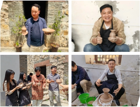 隨后,一行人在我會(huì)常務(wù)理事、宣政官窯(河南)文化產(chǎn)業(yè)發(fā)展有限公司董事長(zhǎng)劉明臣的引導(dǎo)下,漫步神垕老街,探尋盧鈞窯商號(hào),深入了解鈞瓷的歷史淵源與文化底蘊(yùn)。在盧鈞窯的傳統(tǒng)作坊里,青委會(huì)成員們還親自體驗(yàn)了拉胚工藝。從定中心、揉泥,到拉升、塑形,每一個(gè)動(dòng)作都充滿(mǎn)挑戰(zhàn),大家在實(shí)踐中體會(huì)到鈞瓷制作的不易,也對(duì)傳統(tǒng)手工藝人精湛的技藝贊嘆不已。
