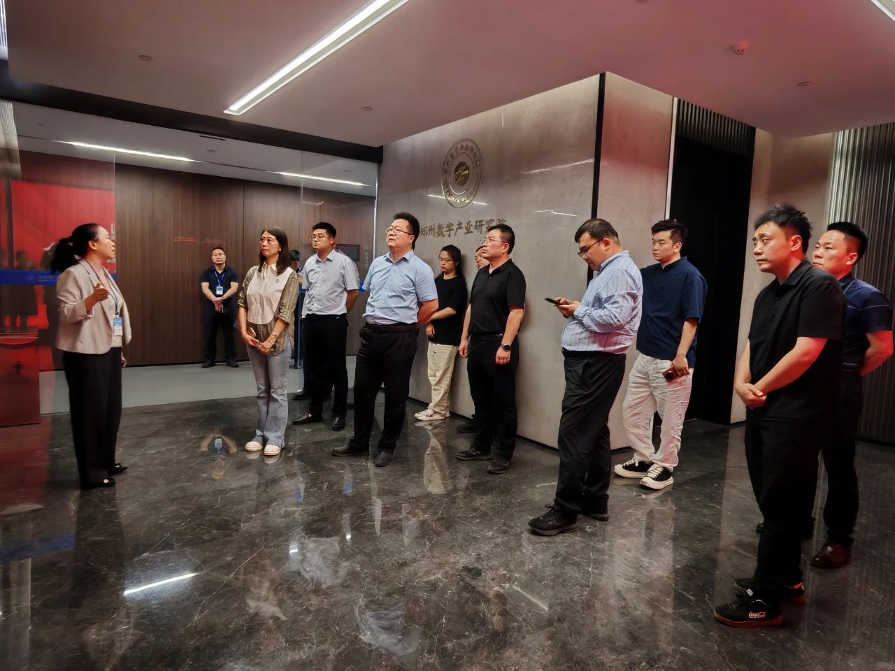 隨后,大家轉(zhuǎn)赴鄭州數(shù)字產(chǎn)業(yè)研究院。在鄭州數(shù)字產(chǎn)業(yè)研究院區(qū)域合作部兼教育培訓(xùn)部負(fù)責(zé)人靳明銀的引領(lǐng)和講解下,大家深入研究院內(nèi)部,不僅了解了研究院的發(fā)展歷程、獲得的榮譽(yù),近距離感受鄭州在數(shù)字產(chǎn)業(yè)領(lǐng)域的創(chuàng)新氛圍與發(fā)展成果,為后續(xù)交流奠定基礎(chǔ)。