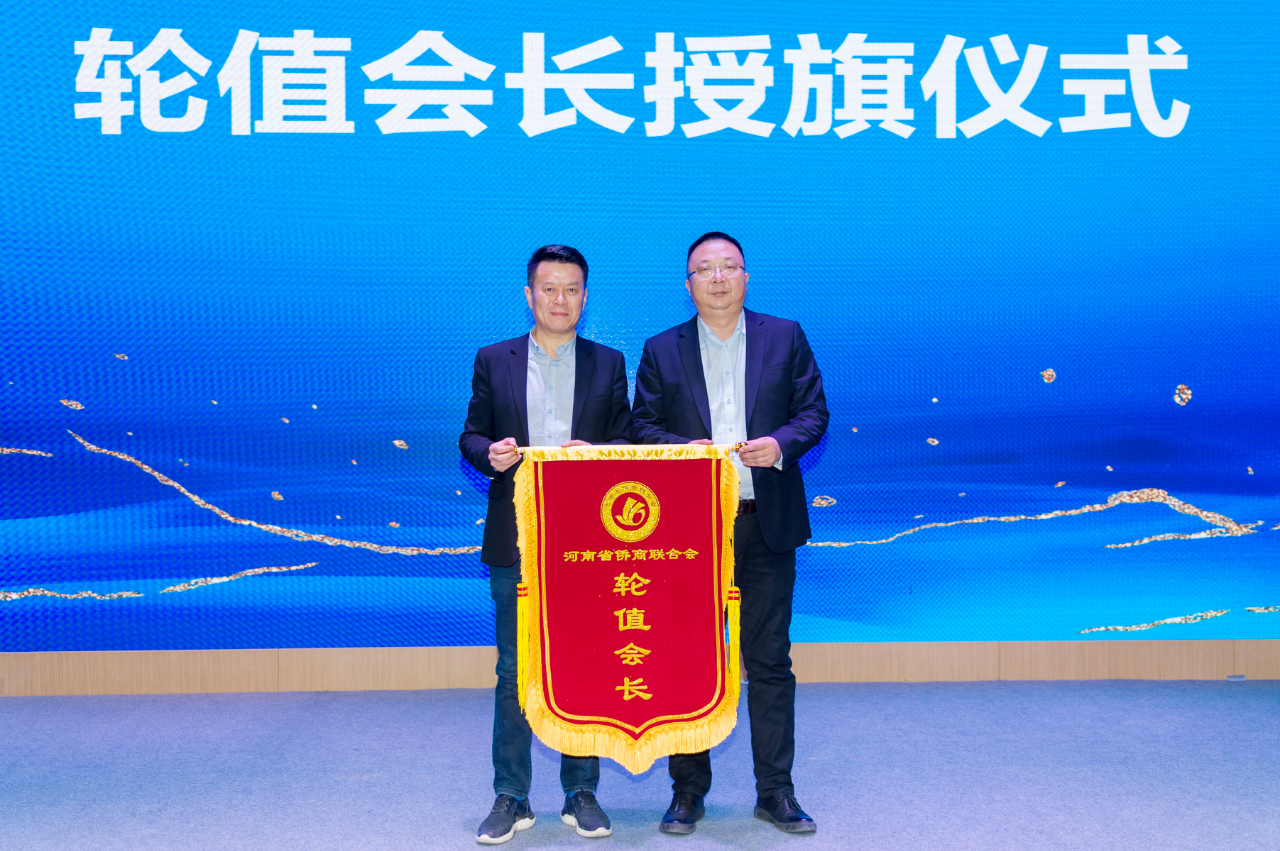 本次常務(wù)理事會(huì)還舉行了輪值會(huì)長(zhǎng)就職儀式。2020年11月25日,省僑商會(huì)第四次會(huì)長(zhǎng)會(huì)議提出并初步審議通過(guò)了輪值會(huì)長(zhǎng)制度,獲得省僑聯(lián)領(lǐng)導(dǎo)的支持。經(jīng)過(guò)推舉自薦等形式,2021年的四位輪值會(huì)長(zhǎng)人選基本確定,首位輪值會(huì)長(zhǎng)為中國(guó)僑商聯(lián)合會(huì)副會(huì)長(zhǎng)、河南省僑商聯(lián)合會(huì)常務(wù)副會(huì)長(zhǎng)鄭定輝。此次常務(wù)理事會(huì)上,會(huì)長(zhǎng)陳錦艷正式進(jìn)行授旗,標(biāo)志著省僑商會(huì)輪值會(huì)長(zhǎng)制度正式啟動(dòng)。首位輪值會(huì)長(zhǎng)鄭定輝因省政府經(jīng)濟(jì)工作會(huì)議不能到場(chǎng),特別委托其公司副總裁馬勇代為作就職發(fā)言。