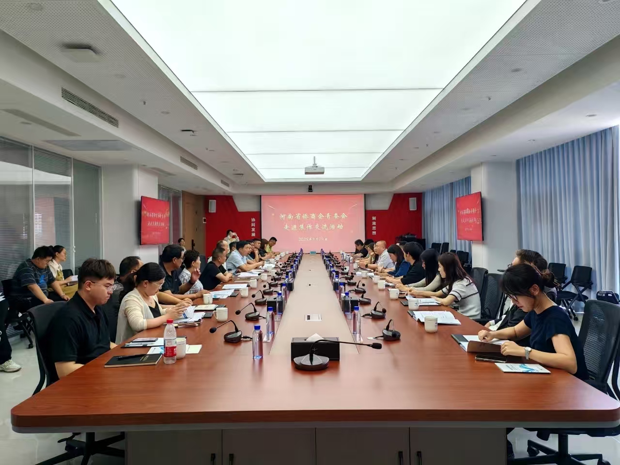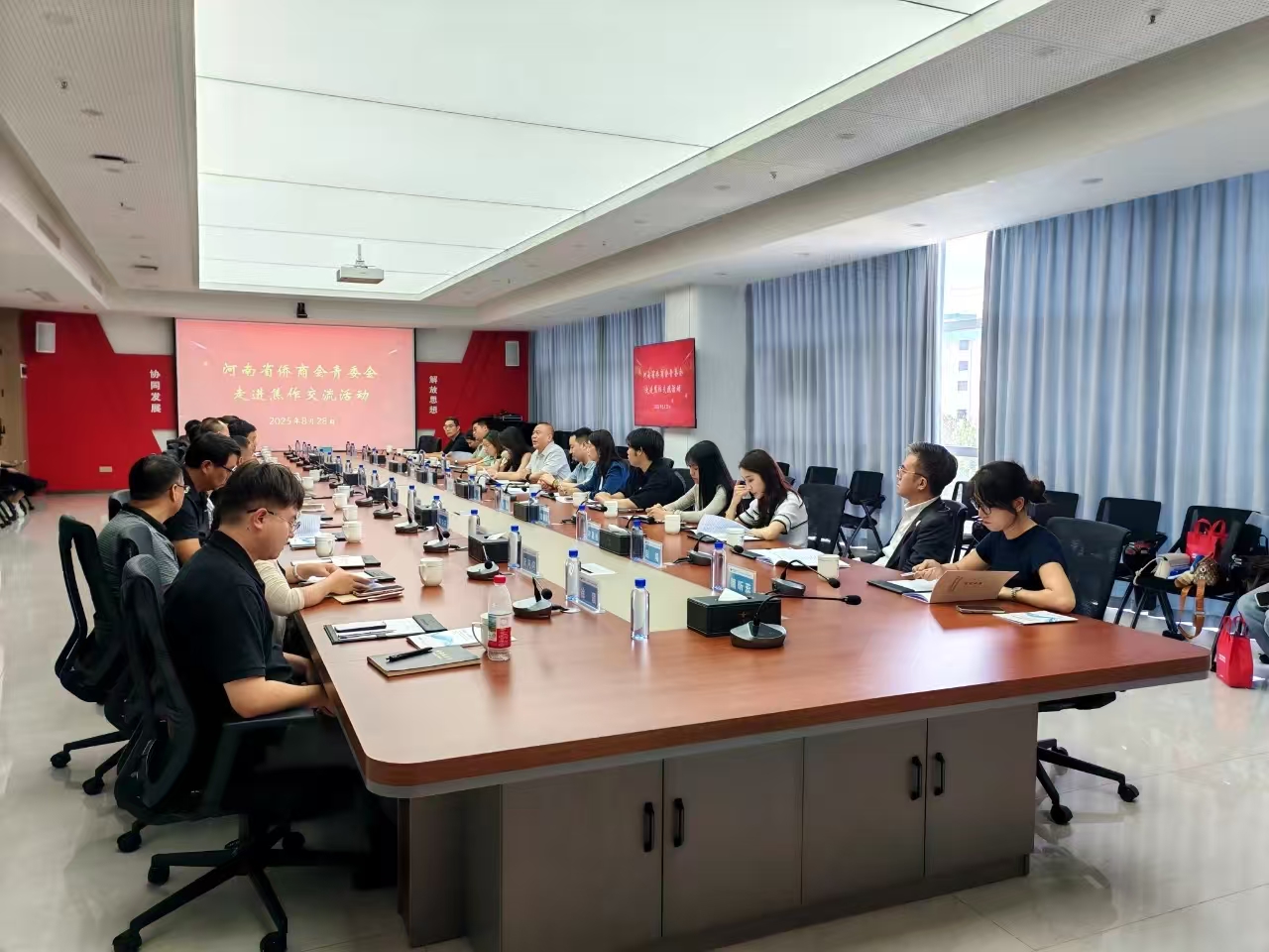 參訪結(jié)束后,雙方舉行了專題座談交流會(huì)。焦作市相關(guān)領(lǐng)導(dǎo)、年輕一代企業(yè)家聯(lián)合會(huì)的青年企業(yè)家代表與省僑商會(huì)青委會(huì)代表團(tuán)齊聚一堂,共話發(fā)展。