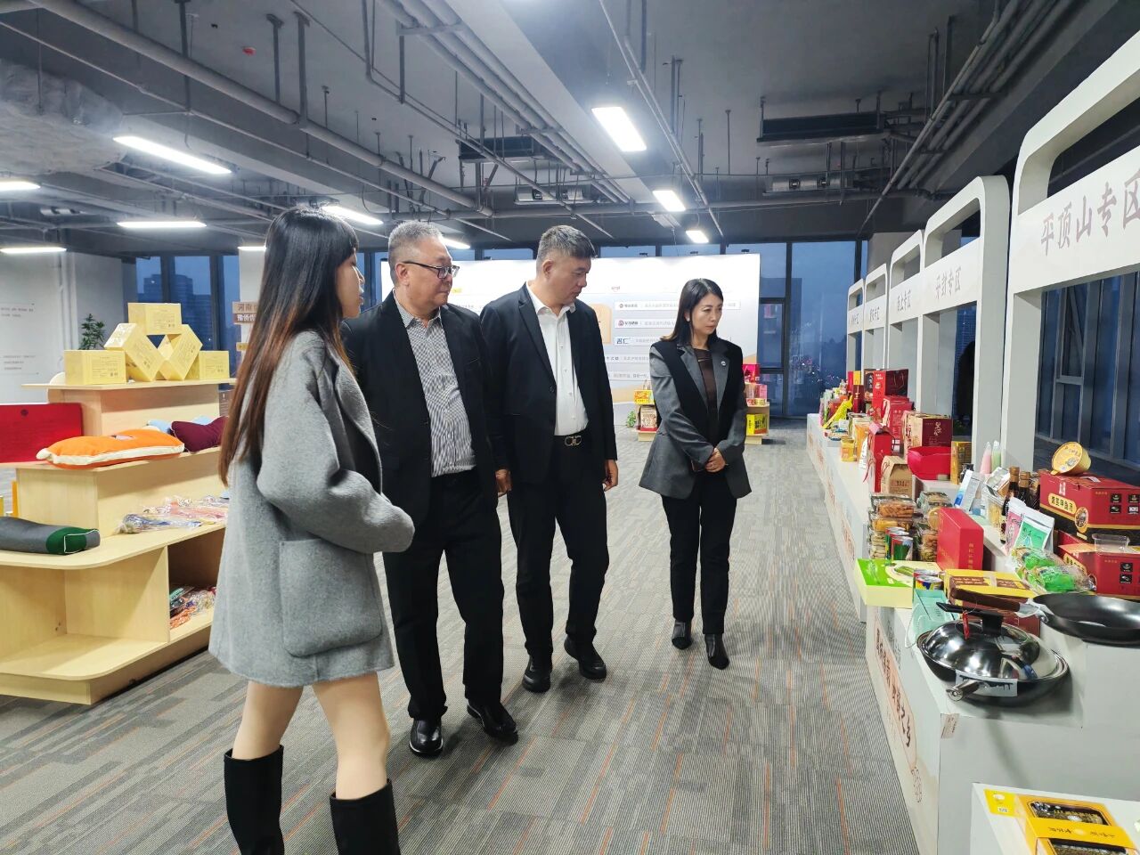 參觀過程中,李天津?qū)ζ脚_上豐富的河南特色產(chǎn)品表現(xiàn)出濃厚興趣,