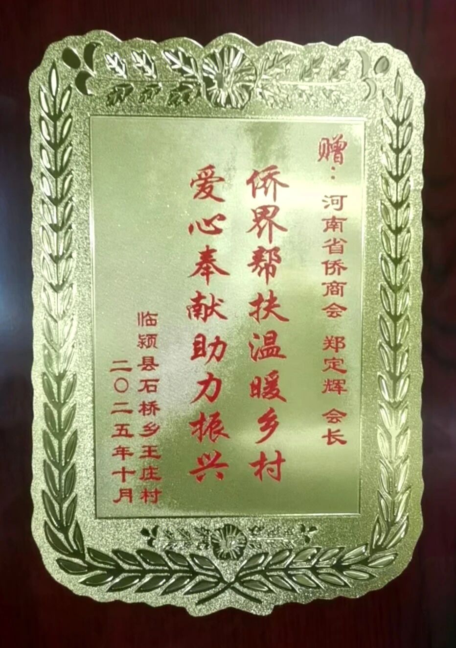 在慰問后的座談會(huì)上,河南省僑聯(lián)向王莊村捐贈(zèng)人居環(huán)境改善資金2.9萬元,用于開展“四送一助力美化家鄉(xiāng)路”活動(dòng),對(duì)入村導(dǎo)視牌、主干道綠化帶圍欄進(jìn)行修繕改造。