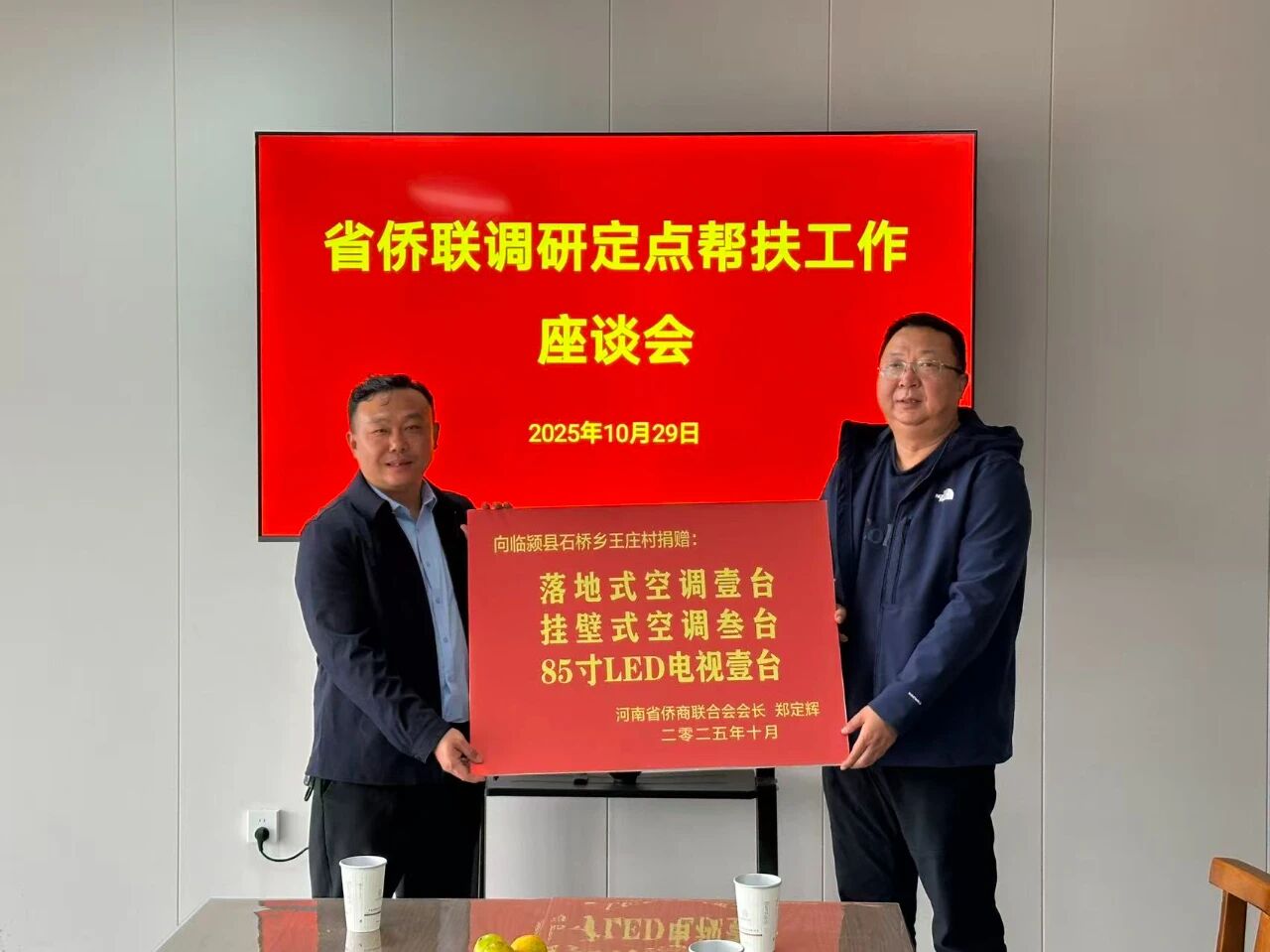 河南省僑商聯(lián)合會(huì)會(huì)長(zhǎng)鄭定輝向王莊村捐贈(zèng)落地式空調(diào)1臺(tái)、掛壁式空調(diào)3臺(tái)及85寸LED電視1臺(tái),進(jìn)一步提升“村民之家”的硬件設(shè)施。