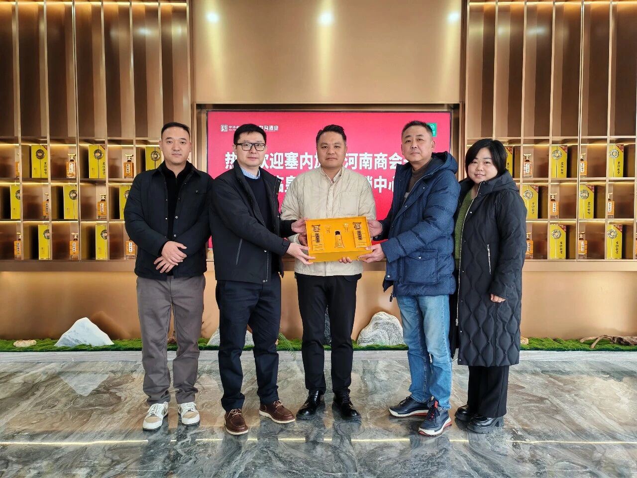 最后,與會(huì)嘉賓共同前往河南省僑商聯(lián)合會(huì)常務(wù)副會(huì)長(zhǎng)單位——皇溝酒業(yè)進(jìn)行參觀?;蕼暇茦I(yè)副總經(jīng)理胡淇皓熱情接待并詳細(xì)介紹了企業(yè)的發(fā)展歷程、釀造工藝與文化傳承。參觀結(jié)束后,胡淇皓向塞內(nèi)加爾河南商會(huì)代表團(tuán)贈(zèng)送了精心準(zhǔn)備的紀(jì)念禮品,雙方互致祝福,期待未來(lái)持續(xù)深化聯(lián)誼,共促合作。