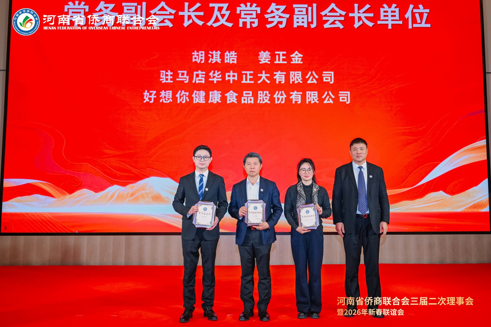 新會員代表正大集團生物工程區(qū)資深總裁馮獻、好想你集團副總經(jīng)理賀艷麗發(fā)表感言。馮獻表示,正大生物始終深耕生物工程領(lǐng)域,堅守高質(zhì)量發(fā)展理念,而河南作為中原腹地,營商環(huán)境優(yōu)良、發(fā)展?jié)摿薮?,此次加入僑商會,正是看中了商會連接中外、資源聚合的平臺優(yōu)勢。賀艷麗表示,加入僑商會倍感榮幸與溫暖,好想你作為深耕健康食品領(lǐng)域三十余載的民族品牌,正致力于從“中國產(chǎn)品”向“中國品牌”的全球躍升。她特別提到,憑借商會強大的全球網(wǎng)絡(luò)與資源優(yōu)勢,企業(yè)將如虎添翼,更積極地參與“豫僑優(yōu)選”等出海平臺建設(shè),與各位同仁并肩攜手,讓承載中原情意的“東方好禮”香飄世界,共同為河南優(yōu)品走向全球貢獻力量。
