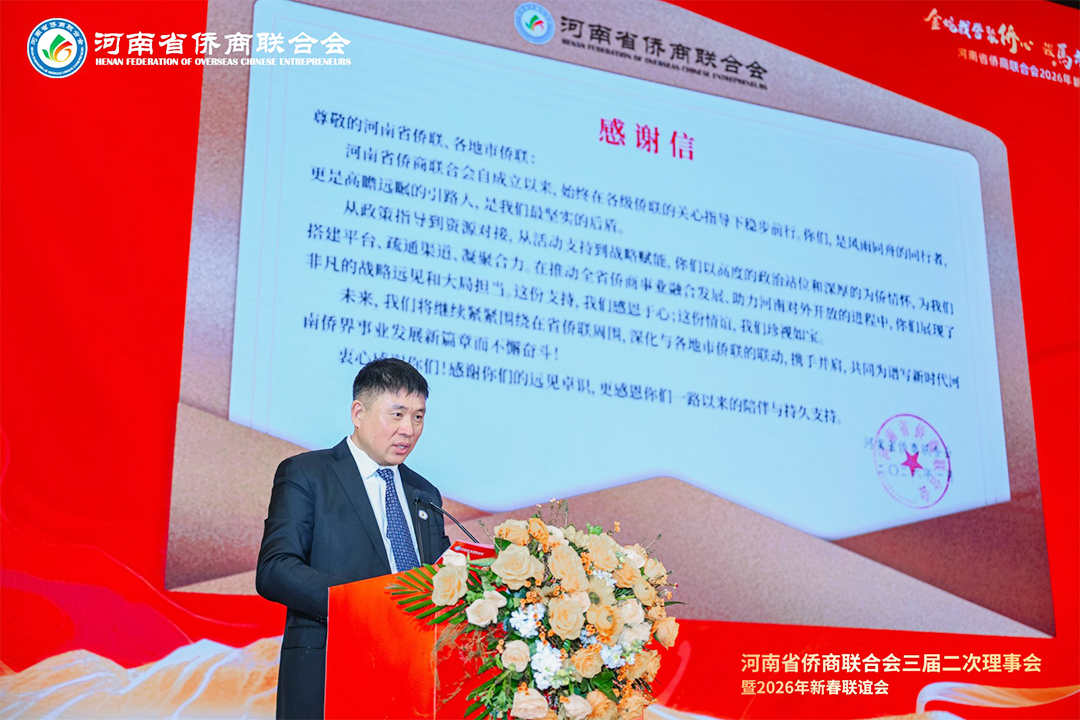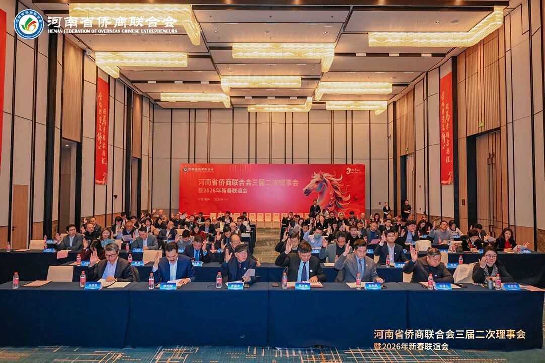 至此,河南省僑商聯(lián)合會三屆二次理事會暨2026年新春聯(lián)誼會圓滿落下帷幕。 這場盛會,既是對過去一年拼搏奮進的總結(jié)與褒獎,更是對新一年揚帆起航的動員與展望。站在新的起點,河南省僑商聯(lián)合會將繼續(xù)秉持初心,與全體會員一道,以龍馬之精神,騁萬里之征程,匯聚僑界磅礴力量,為助力河南經(jīng)濟社會高質(zhì)量發(fā)展、譜寫新時代中原更加出彩的絢麗篇章作出新的更大貢獻!