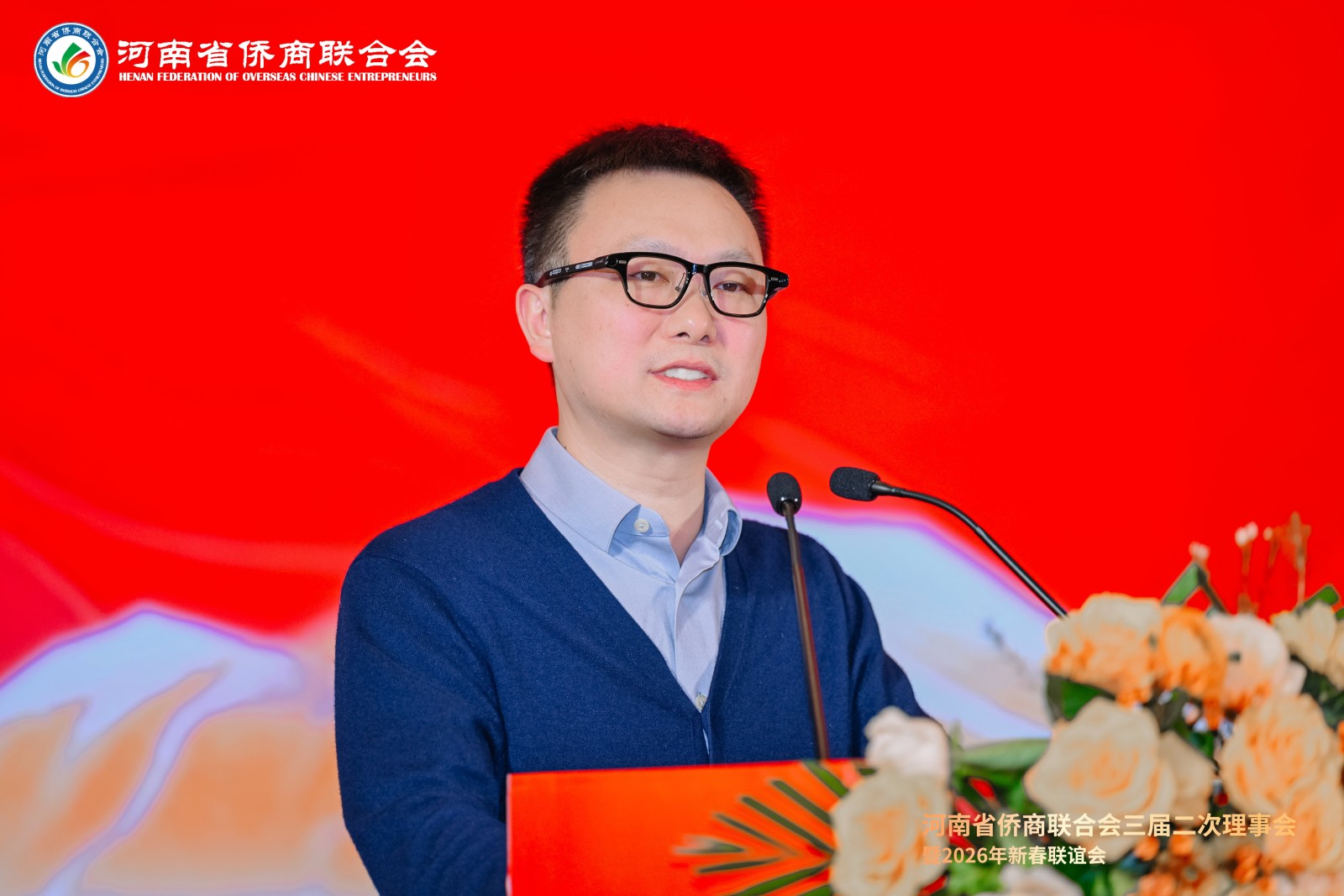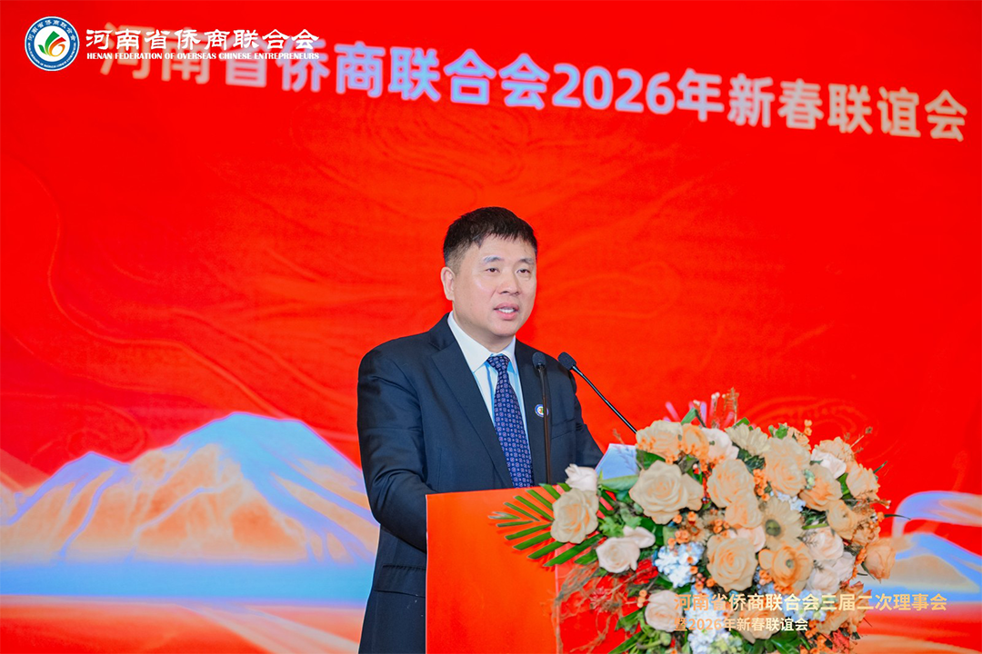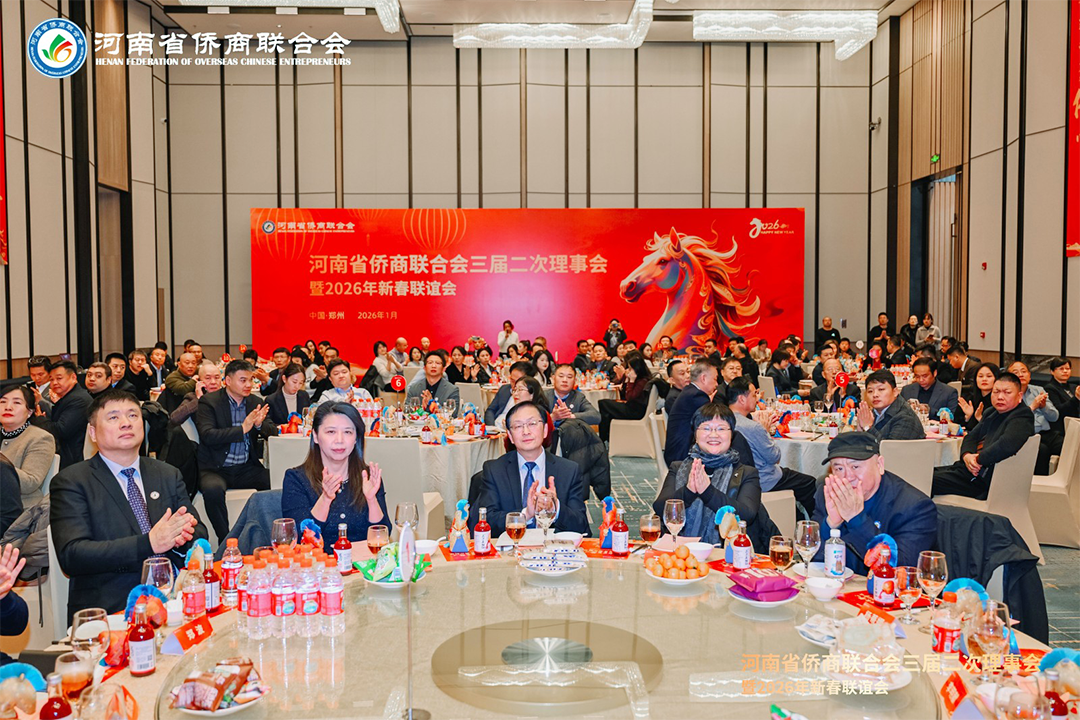 歲序更替,華章日新。1月21日下午,河南省僑商聯(lián)合會三屆二次理事會暨2026年新春聯(lián)誼會隆重舉行。河南省僑聯(lián)黨組書記、主席楊海強,黨組成員、副主席呂劍,文化經(jīng)濟聯(lián)絡(luò)部副部長李丹丹;河南省人民政府僑務(wù)辦公室僑務(wù)事務(wù)處處長、一級調(diào)研員王潤玲,僑務(wù)綜合處二級調(diào)研員王濤,僑務(wù)事務(wù)處副處長、三級調(diào)研員羅文潔;鄭州市僑聯(lián)黨組書記、主席時旭,黨組成員、一級調(diào)研員賈風(fēng)雷;開封市僑聯(lián)黨組書記、主席胡廣軍,秘書長馮志祺;鶴壁市僑聯(lián)黨組書記、主席趙小玲,黨組成員、副主席付英;焦作市僑聯(lián)黨組書記、主席王恒進;濮陽市僑聯(lián)黨組書記、主席朱騰強;商丘市僑聯(lián)黨組書記、主席趙勁松;周口市僑聯(lián)黨組書記、主席劉淑紅,辦公室主任王雪偉;平頂山僑聯(lián)主席王文玉;濟源市僑聯(lián)主席王會東;許昌市僑聯(lián)黨組成員、副主席郭惠霞;駐馬店市僑聯(lián)黨組成員、副主席張瑋,秘書長謝威;信陽市僑聯(lián)秘書長雷偉;鶴壁市淇縣統(tǒng)戰(zhàn)部副部長、僑聯(lián)主席董瑞民;河南大學(xué)黨委統(tǒng)戰(zhàn)部副部長黃鑫,河南財經(jīng)政法大學(xué)管理學(xué)部執(zhí)行部長、中國(河南)企業(yè)出海研究院院長王永偉,鄭州智能科技職業(yè)學(xué)院副校長王發(fā)清,法國河南同鄉(xiāng)會會長祝曉琳,馬來西亞工商協(xié)會副會長楊蒂娜,美國加州河南促進會會長、海外炎黃文化傳承基金會董事長張麗莉,澳大利亞河南青年會會長王皓,清華大學(xué)建筑設(shè)計研究院文化旅游院副院長鄭波,清河云選創(chuàng)始人趙永,里斯中國戰(zhàn)略研修院增長中心合伙人郭君仕等受邀參會,與我會會長鄭定輝,駐會執(zhí)行會長王廣國,黨支部書記羅建中,執(zhí)行會長陳向輝、李明獻、宋保山,常務(wù)副會長苗青、劉喜順、王如民、趙天星、張士勇、楚喆、胡淇皓、姜正金、石聚領(lǐng)、馬德壽,秘書長柴莉,副會長王繼璋、王建棋、宋軍、侯占元、王培雷、趙靜、陳雪平、羅利、周偉民、王世印、鄭海霞、杜新峰、黨秀浩、梁斌、代月紅、趙輝、管世昌、王永偉、徐萌婕,以及其他全體理事會成員歡聚一堂,在溫馨祥和、昂揚奮進的氛圍中,迎接充滿希望的丙午馬年。