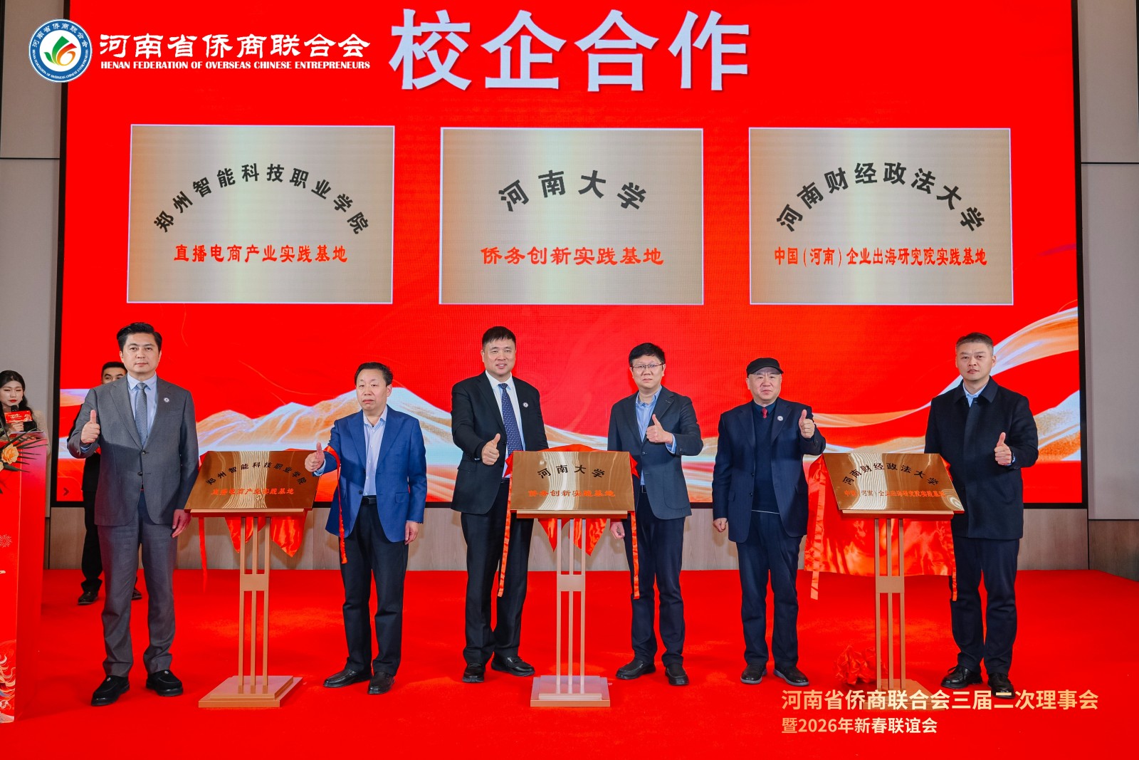 為促進產(chǎn)學(xué)研的深度融合,大會還舉行了莊重的校企合作揭牌儀式。河南省僑商聯(lián)合會與河南大學(xué)、河南財經(jīng)政法大學(xué)中國(河南)企業(yè)出海研究院、鄭州智能科技職業(yè)學(xué)院正式建立戰(zhàn)略合作關(guān)系,標志著商會在推動產(chǎn)教融合、人才共育、科研轉(zhuǎn)化方面邁出了堅實一步,將為會員企業(yè)發(fā)展注入更強勁的智力動能。
