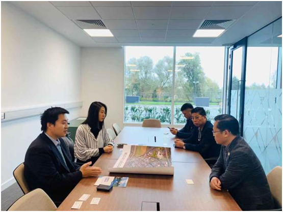 ▲考察劍橋啟迪科技園,并與對(duì)方座談