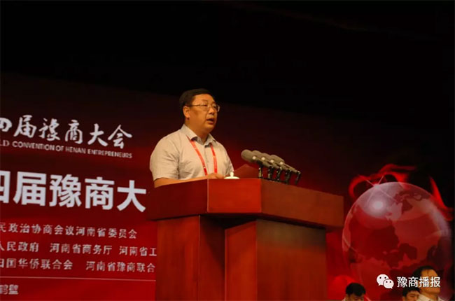 ▲中共鶴壁市委書(shū)記馬富國(guó)代表本屆大會(huì)承辦城市,向前來(lái)參會(huì)的豫商代表發(fā)表熱情的歡迎詞