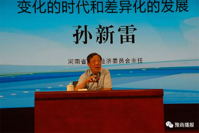 ▲河南省政協(xié)經(jīng)濟(jì)委員會(huì)主任孫新雷演講的題目是《變化的時(shí)代和差異化的發(fā)展》,從專(zhuān)業(yè)角度給豫商發(fā)展提出了很多思路和建議