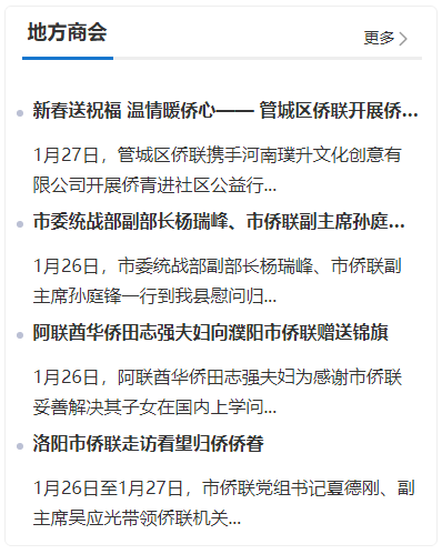 地方商會(huì) 匯聚了河南省內(nèi)各地市僑聯(lián)、僑商會(huì)的活動(dòng)訊息。