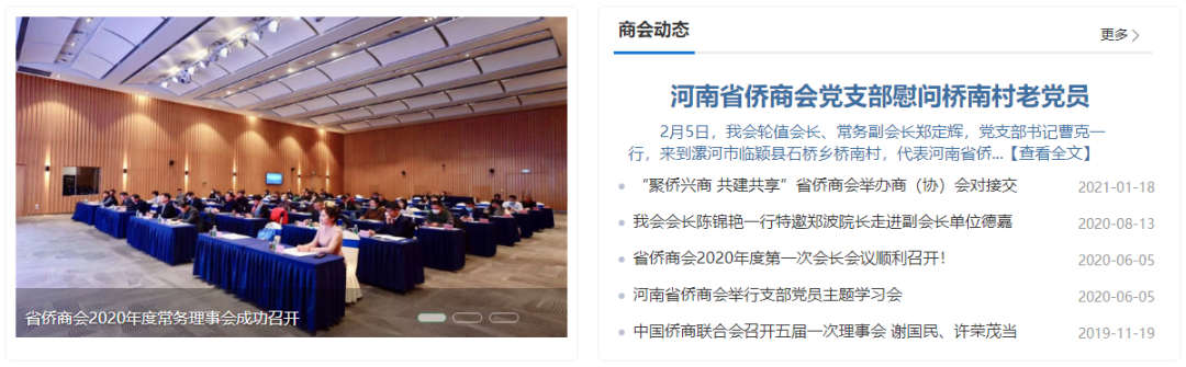 △主要更新省僑聯(lián)、省僑商會(huì)召開的重大會(huì)議或活動(dòng)報(bào)道(左側(cè)新聞圖滑動(dòng)播放,右側(cè)為主要內(nèi)容)