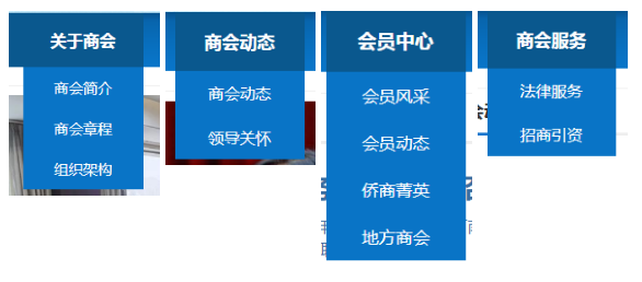 改變,我們從“頭”開始。在首頁,頂部新增了一排欄目表,整合了“首頁”、“關(guān)于商會(huì)”、“商會(huì)動(dòng)態(tài)“、“通知公告“、“僑界資訊”、“商會(huì)服務(wù)”、“政策法規(guī)”、“會(huì)員中心”、“社會(huì)公益”九大內(nèi)容板塊,整齊劃一、簡潔明了、方便查詢。