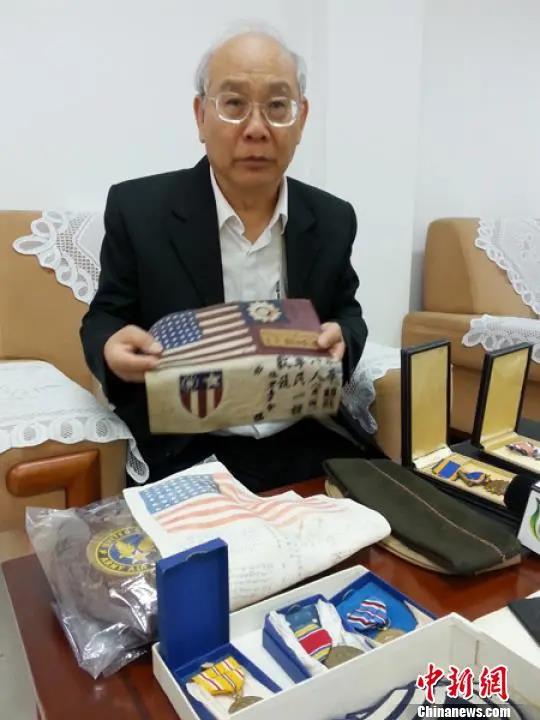 同華裔“飛虎隊”老兵一道,向中國湖南芷江飛虎隊紀(jì)念館捐贈軍服、報話機、中文指南等“飛虎隊”文物