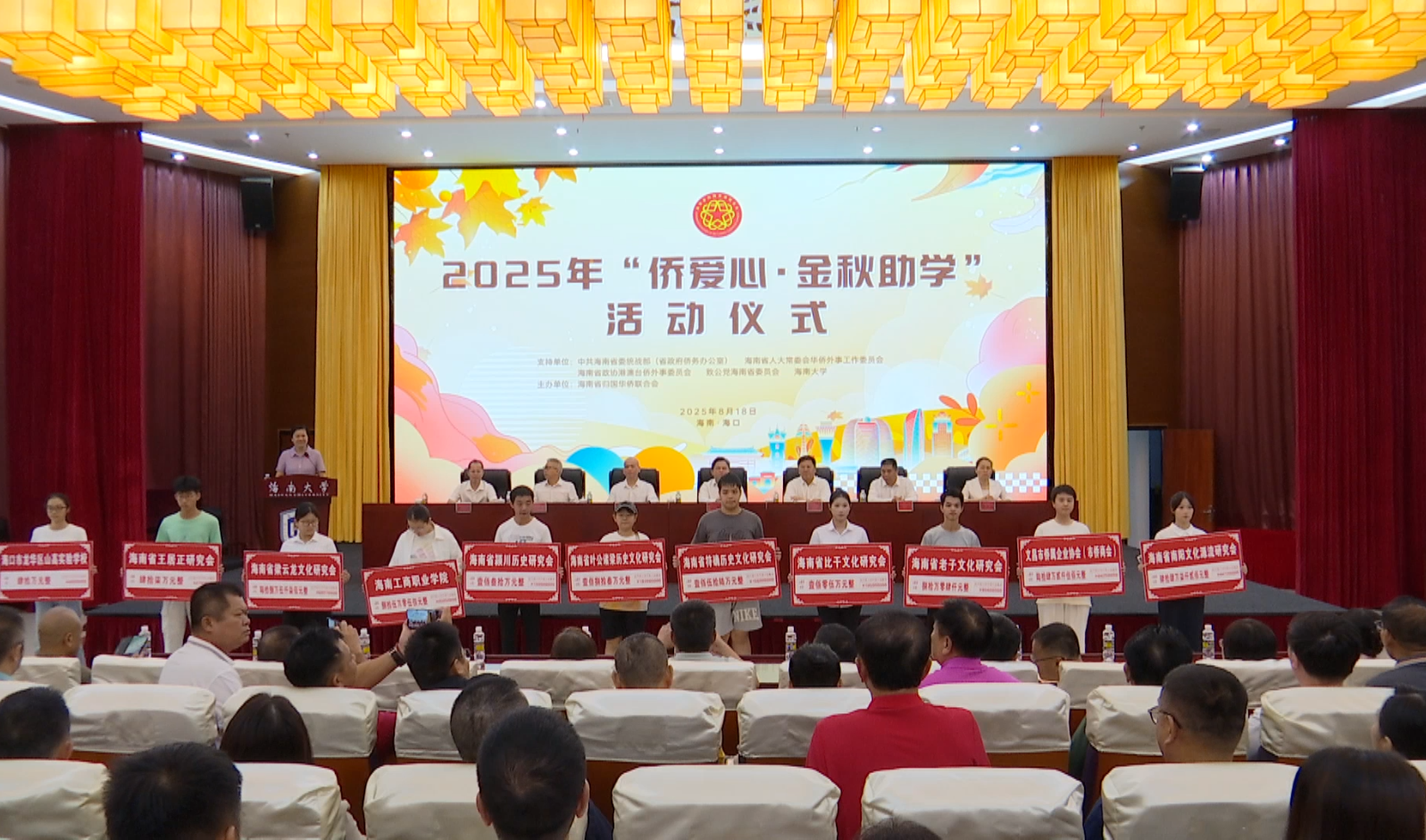8月18日,由海南省僑聯(lián)主辦的2025年“僑愛心·金秋助學”活動儀式在??谂e行。活動現(xiàn)場,海南省副省長李鋒,中國僑聯(lián)副主席、海南省僑聯(lián)黨組書記、主席梁謀等領導和嘉賓共同為此次參與捐款的僑界愛心社團、學校和企業(yè)的代表頒授感謝信臺牌,向今年高考金榜題名的學子代表頒發(fā)獎助學金。我會符雄副會長出席活動,并代表我會向省僑愛公益基金會捐贈5萬元助學金,助力僑界學子圓夢大學。