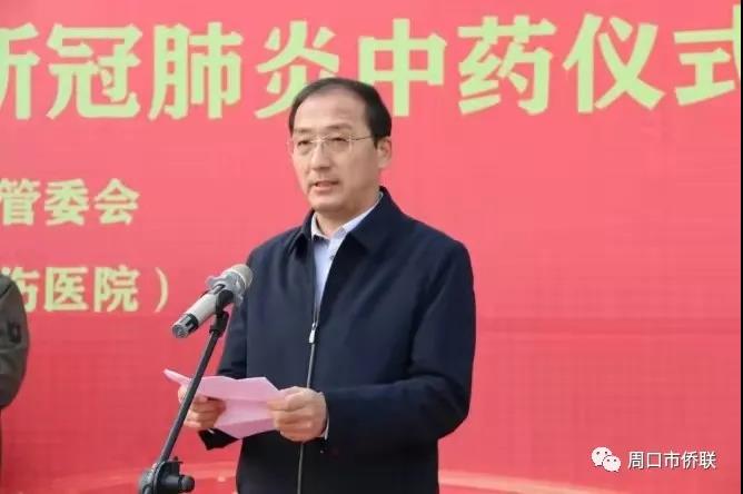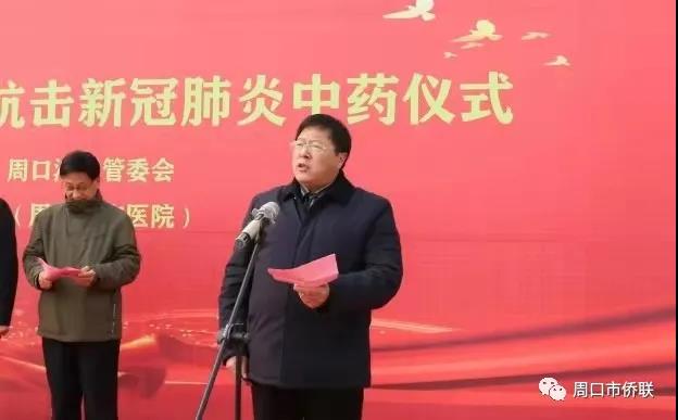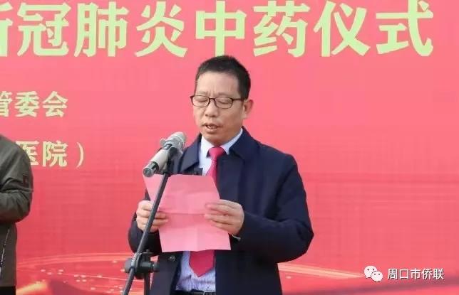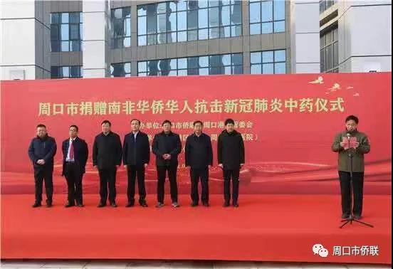 周口市捐贈(zèng)南非華僑華人抗擊新冠肺炎中藥儀式由周口港區(qū)管委會(huì)黨委委員張東立主持。