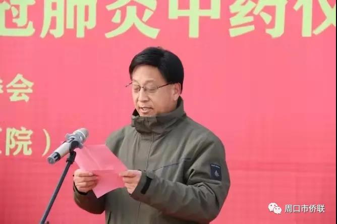 周口市人大常委會(huì)副主任程新華宣布捐贈(zèng)中藥車輛發(fā)車。