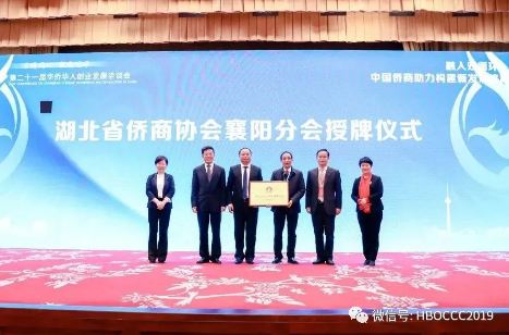 隨后,喻鵬對湖北省僑商協(xié)會襄陽分會進行授牌。湖北省委統(tǒng)戰(zhàn)部副部長沙玉山、湖北省僑聯(lián)主席吳朝安、襄陽市人民政府副市長、黨組成員龍小紅、襄陽市僑聯(lián)主席陳紅見證儀式。