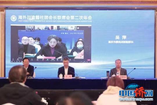 中國僑網(wǎng)成都11月29日電 川渝兩省市以視頻連線方式于28日下午同步舉行海外川渝籍社團會長聯(lián)席會第二次年會。重慶市委統(tǒng)戰(zhàn)部副部長吳萍,四川省委統(tǒng)戰(zhàn)部副部長、省僑辦主任文甦分別在重慶、成都出席年會并講話。來自全球各地的70余名海外川渝籍社團負責人以線上線下的方式出席了此次年會。