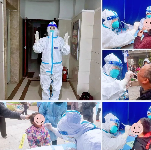 副會(huì)長(zhǎng)、南京和康醫(yī)養(yǎng)健康管理有限公司董事長(zhǎng)冉玉紅,堅(jiān)持同心同向,充分發(fā)揮資源優(yōu)勢(shì),積極組織公司員工馳援抗疫一線。和康的醫(yī)護(hù)人員每天早上8點(diǎn)前集合完畢,9點(diǎn)開始核酸檢測(cè)采樣工作,一忙就是一天。手術(shù)帽、醫(yī)用隔離面罩、N95口罩、隔離衣和橡膠手套,一身裝備密不透風(fēng),一天穿下來,如同蒸桑拿一般,衣服被汗水粘在身上,頭發(fā)也全濕透了。但她們無怨無悔、始終如一,堅(jiān)守在抗擊疫情第一線。