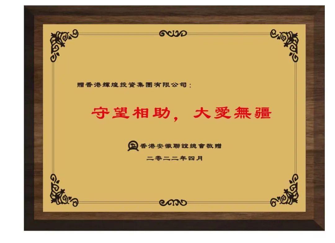 香港安徽聯(lián)誼總會送來“守望相助、大愛無疆”牌匾致以誠摯謝意。