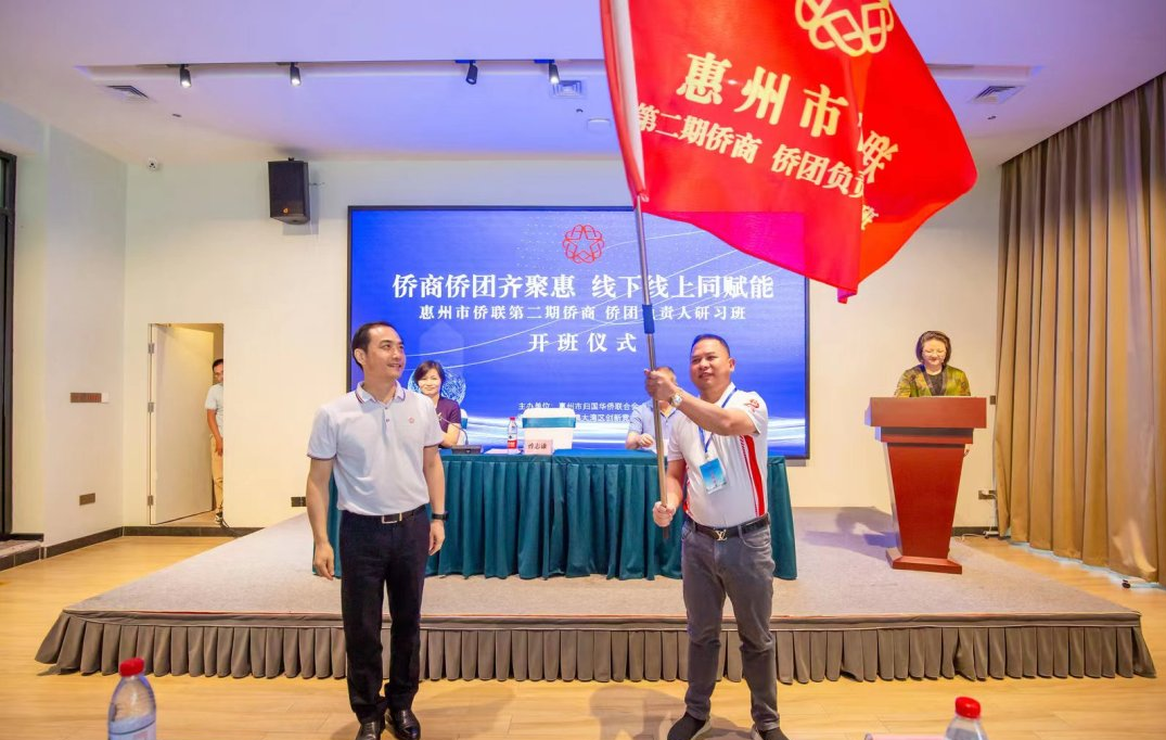 9月22日上午,惠州市僑聯(lián)舉辦第二期僑商 僑團(tuán)負(fù)責(zé)人研習(xí)班開班儀式。市僑聯(lián)黨組書記、主席曾志謙,市僑聯(lián)副主席兼秘書長蔡敏兒出席了儀式。蔡敏兒作開班動(dòng)員,曾志謙為研習(xí)班頒授班旗并向海外社團(tuán)贈(zèng)送市僑聯(lián)交流旗。