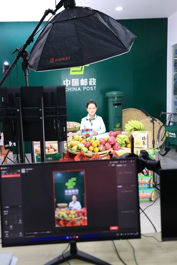惠州港澳臺僑青年創(chuàng)業(yè)直播基地正在進行直播銷售惠州農產品。